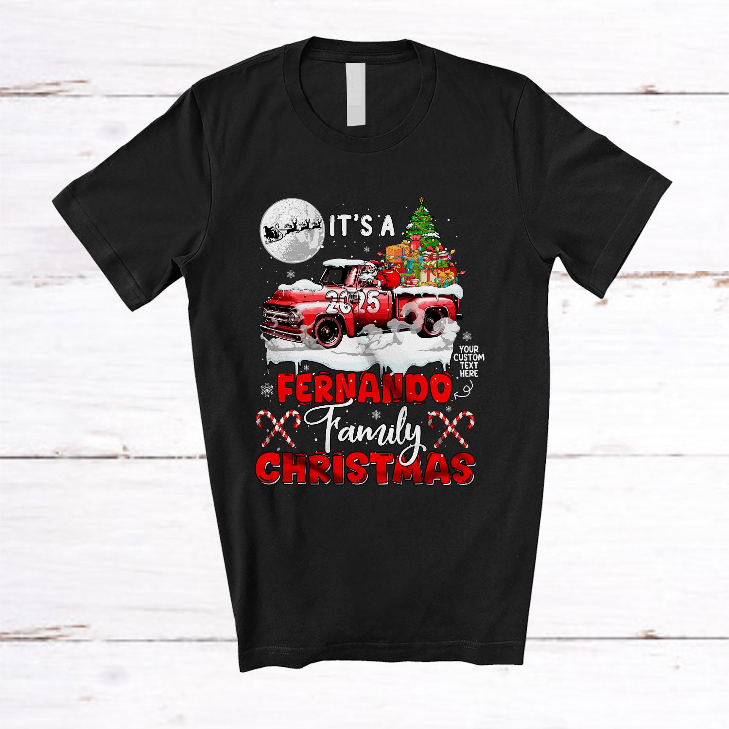 Personalized Custom Name 2025 Family Christmas; Fantastic X-mas Santa Riding Pickup Truck T-Shirt