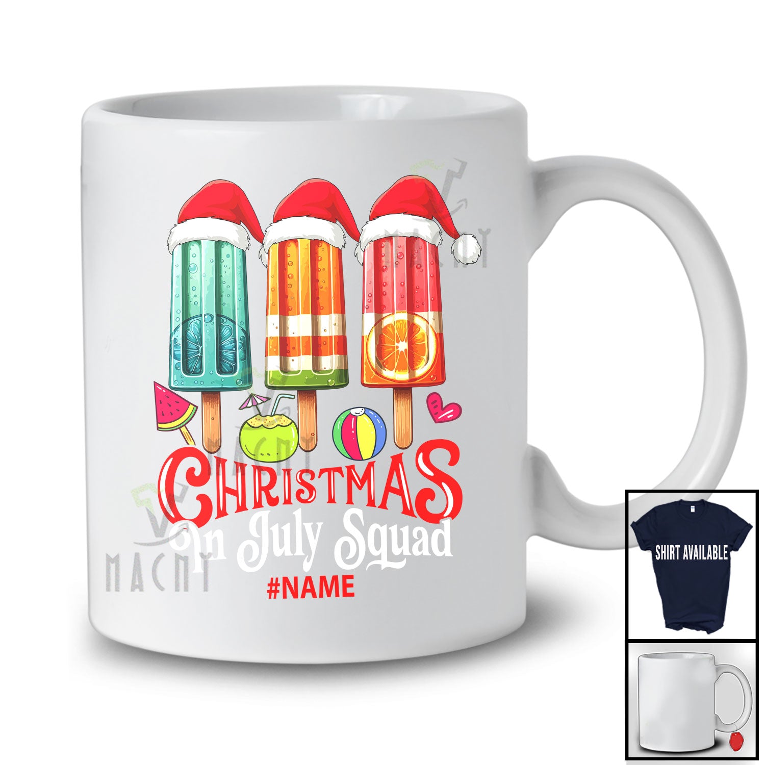 • Personalized Custom Name Christmas In July Squad; Joyful Summer Vacation Three Ice Pops Ice Cream T-Shirt. This cotton t-shirt is a durable staple product with a classic fit. One of the most popular items, it has a relaxed style made for everyday and casual wear.