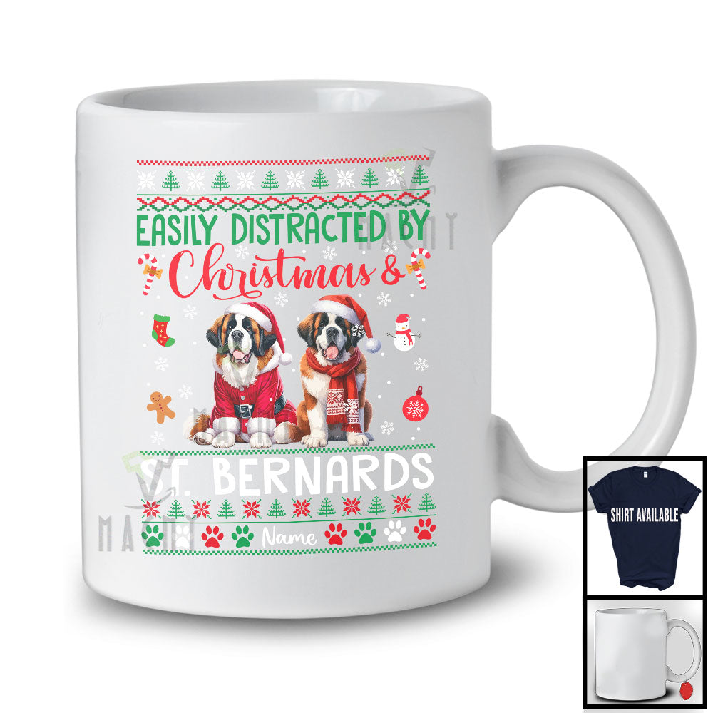 This Personalized Custom Name Easily Distracted By Christmas St. Bernards; Lovely Sweater Santa Dog T-Shirt is great idea gift for your family, friends in this birthday, christmas, mother's day, father's day, patrick's day or any holiday.