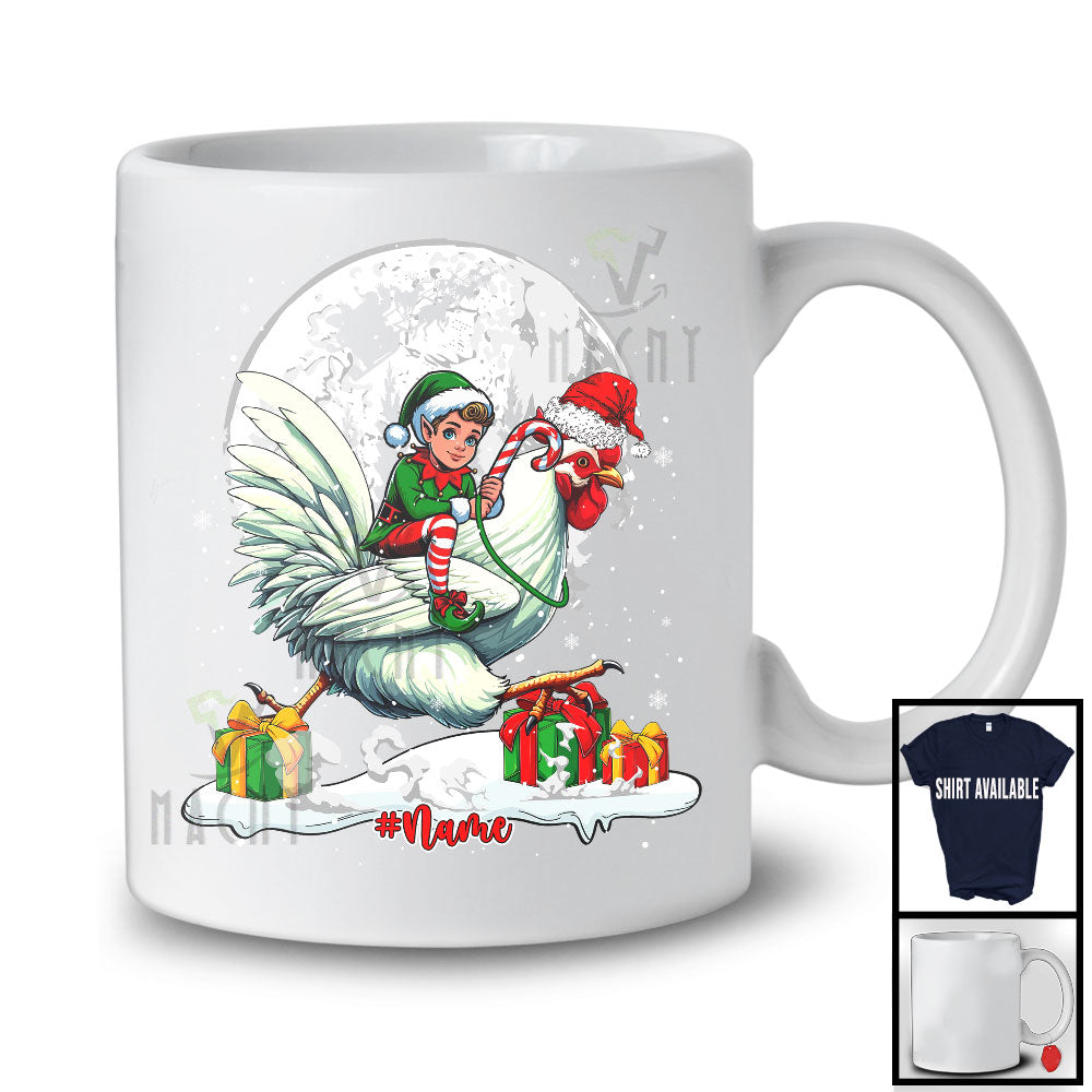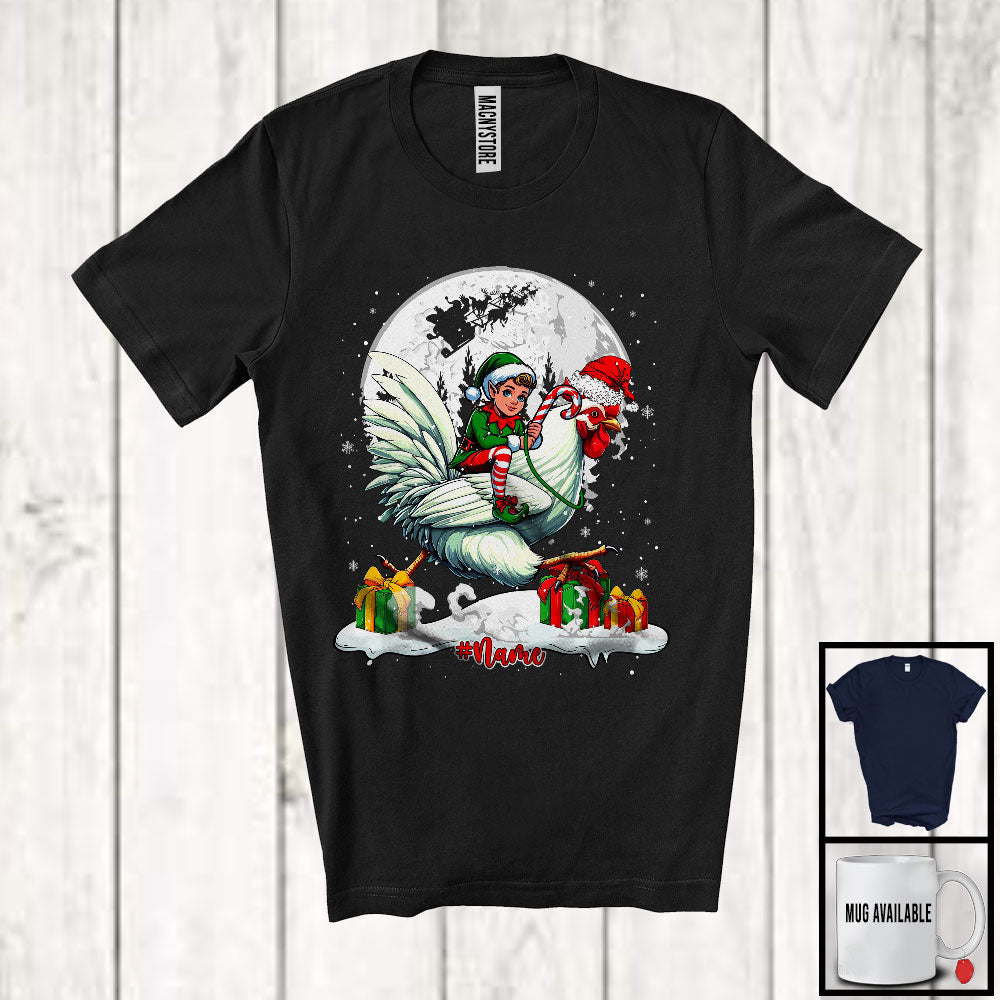 Personalized Custom Name Elf Riding Chicken Santa; Cheerful Christmas Snowing; Animal Farmer T-Shirt