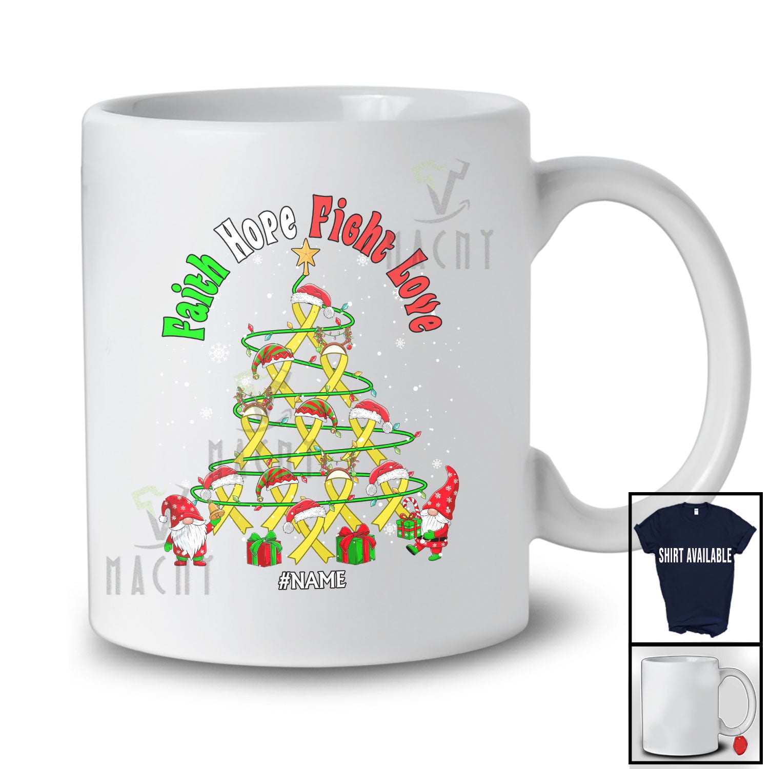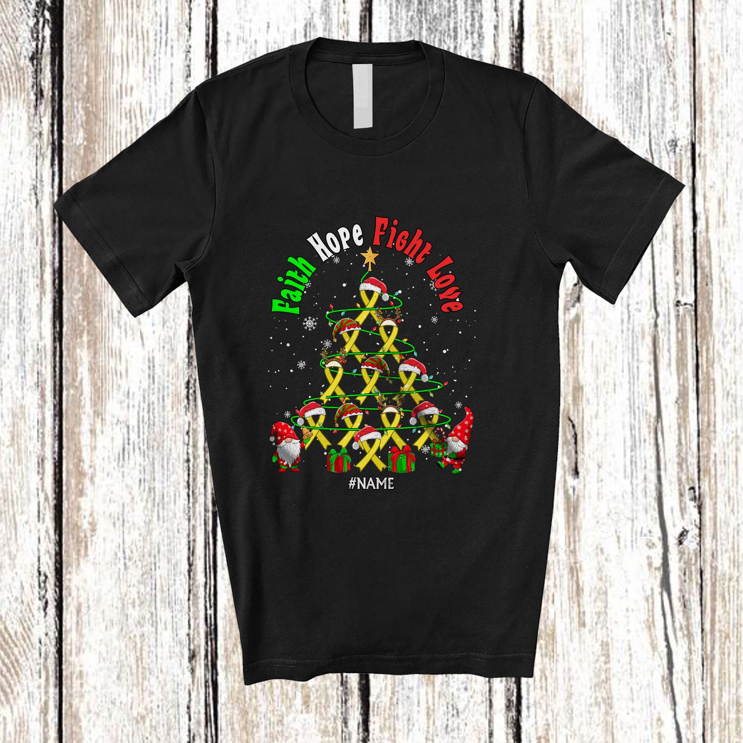Personalized Custom Name Faith Hope Fight Love; Lovely Christmas Tree Childhood Cancer Ribbon T-Shirt
