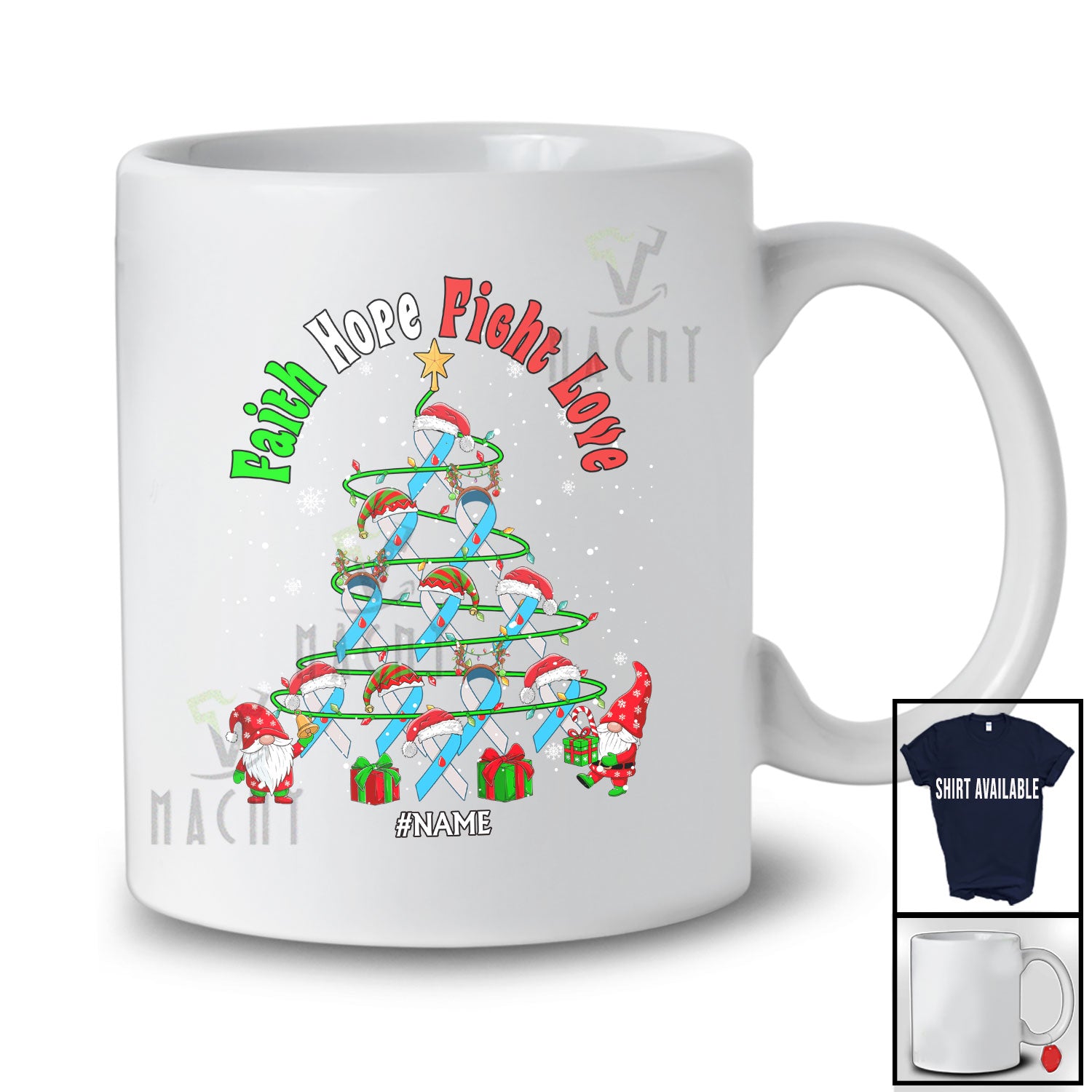 Personalized Custom Name Faith Hope Fight Love; Lovely Christmas Tree Diabetes Cancer Ribbon T-Shirt
