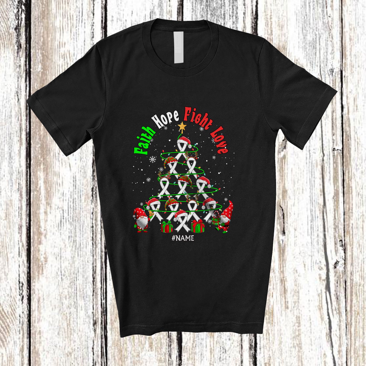 Personalized Custom Name Faith Hope Fight Love; Lovely Christmas Tree Lung Cancer Ribbon T-Shirt