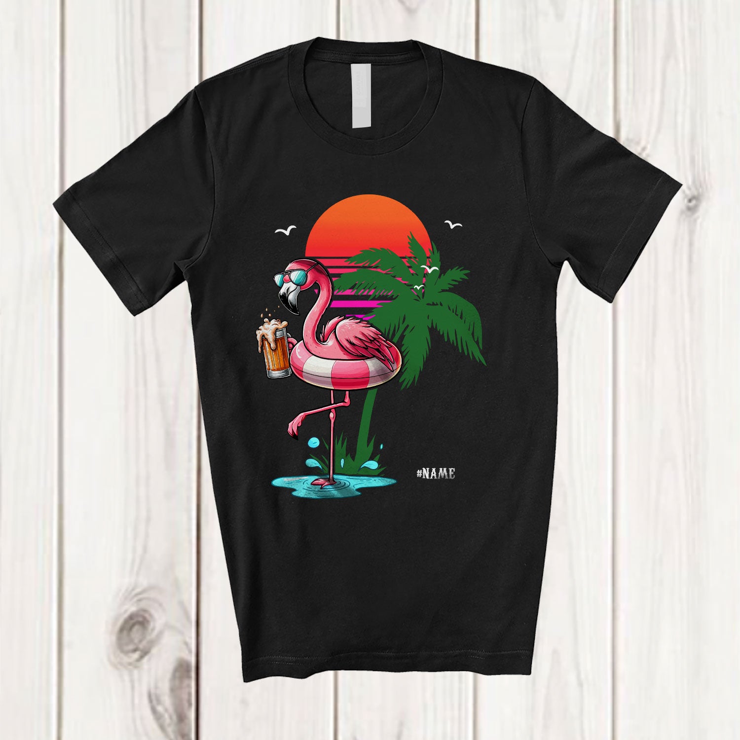 Personalized Custom Name Flamingo Drinking Beer; Humorous Christmas In July Summer Drunker T-Shirt