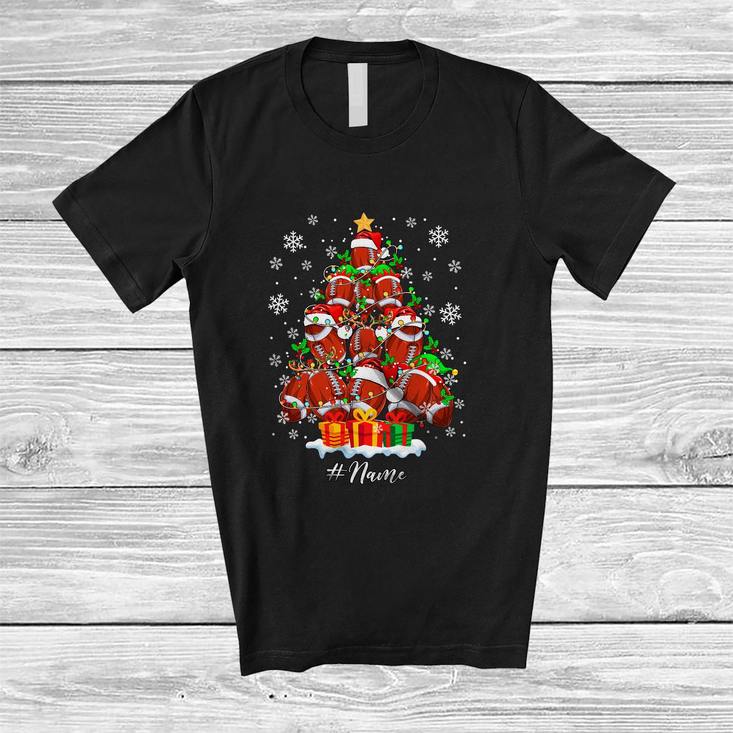 Personalized Custom Name Football Christmas Tree Lights; Awesome X-mas Sport Player Team T-Shirt