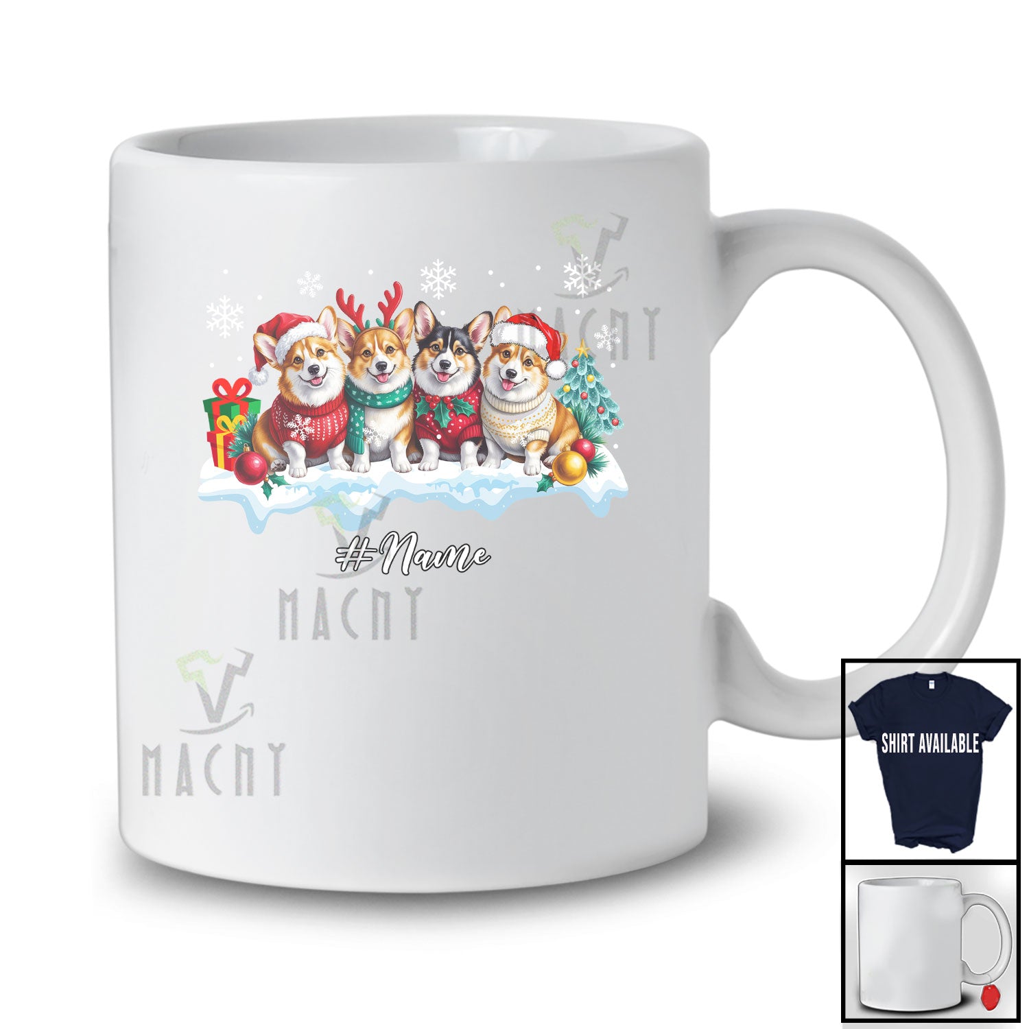 Personalized Custom Name Four X-mas Santa Corgi Painting Draw; Amusing Christmas Family T-Shirt. This cotton t-shirt is a durable staple product with a classic fit. One of the most popular items, it has a relaxed style made for everyday and casual wear.