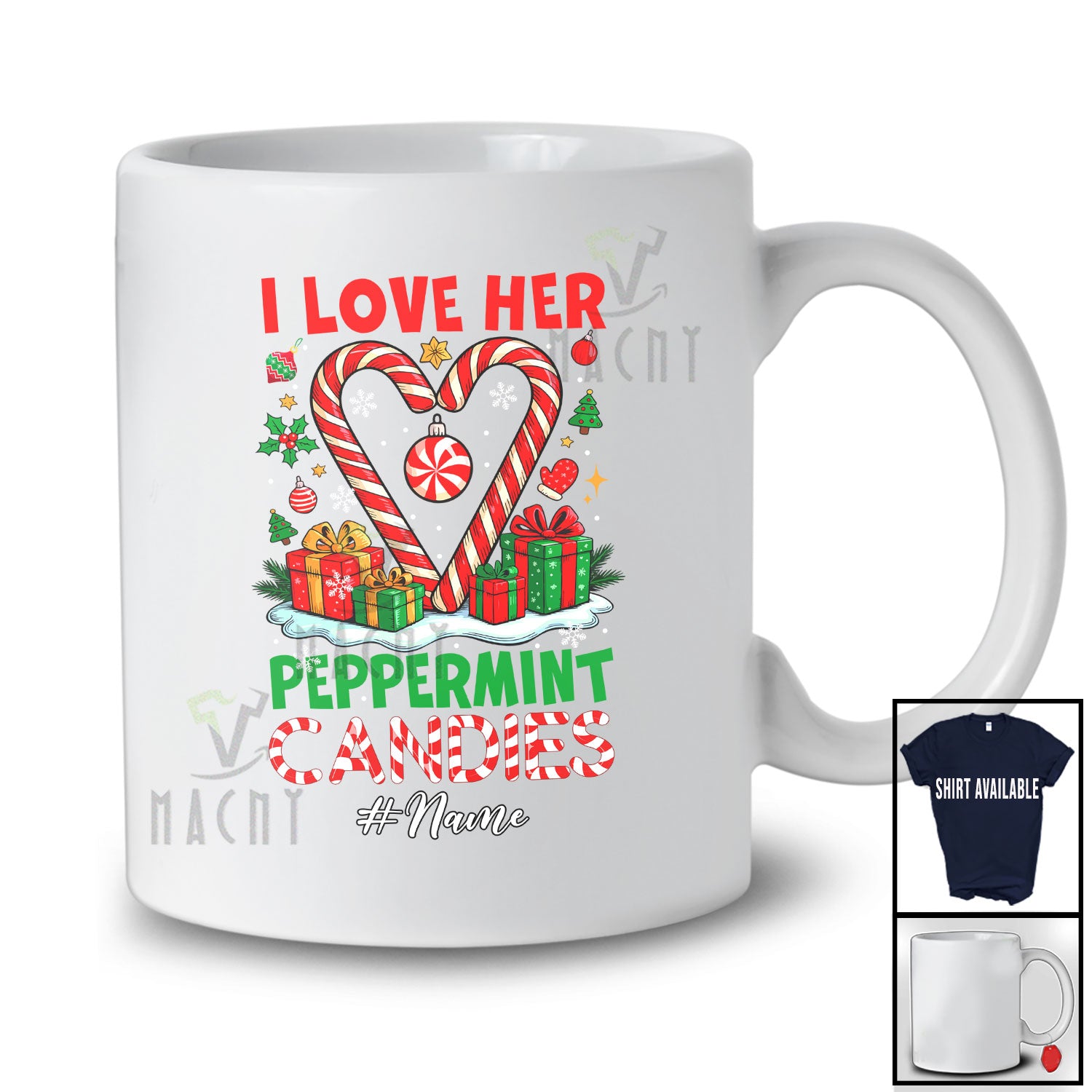 This Personalized Custom Name I Love Her Peppermint Candies; Joyful Christmas Adult Couple T-Shirt is great idea gift for your family, friends in this birthday, christmas, mother's day, father's day, patrick's day or any holiday.