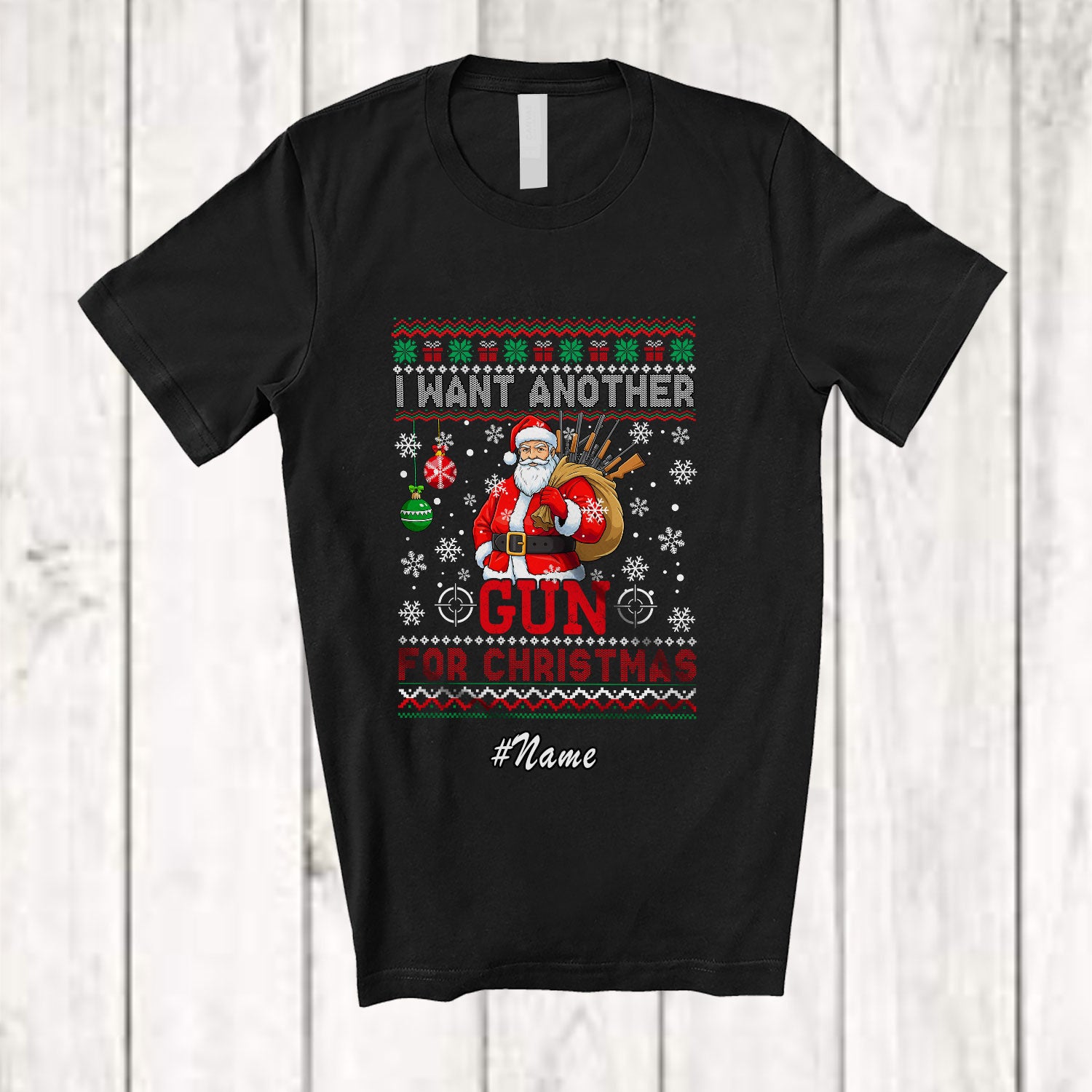 Personalized Custom Name I Want Another Gun Christmas; Humorous Sweater Santa Hunting Hunter T-Shirt