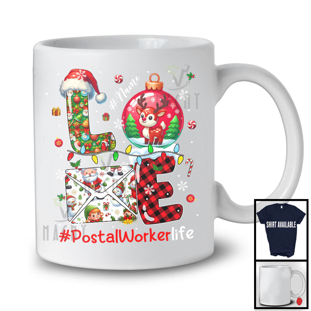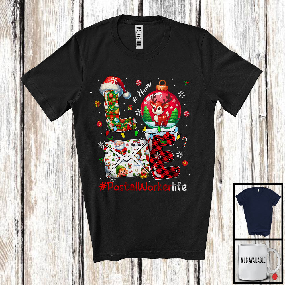 Personalized Custom Name LOVE Postal Worker; Lovely Christmas Plaid Ornament Envelope T-Shirt