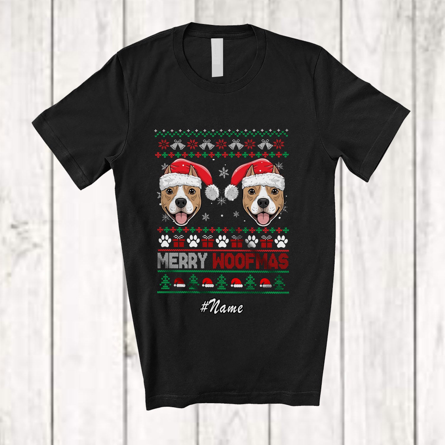 • The Personalized Custom Name Merry Woofmas; Lovely Christmas Sweater Santa Pit Bull Face Owner T-Shirt is the yin, to your yang. You've found what you're looking for.