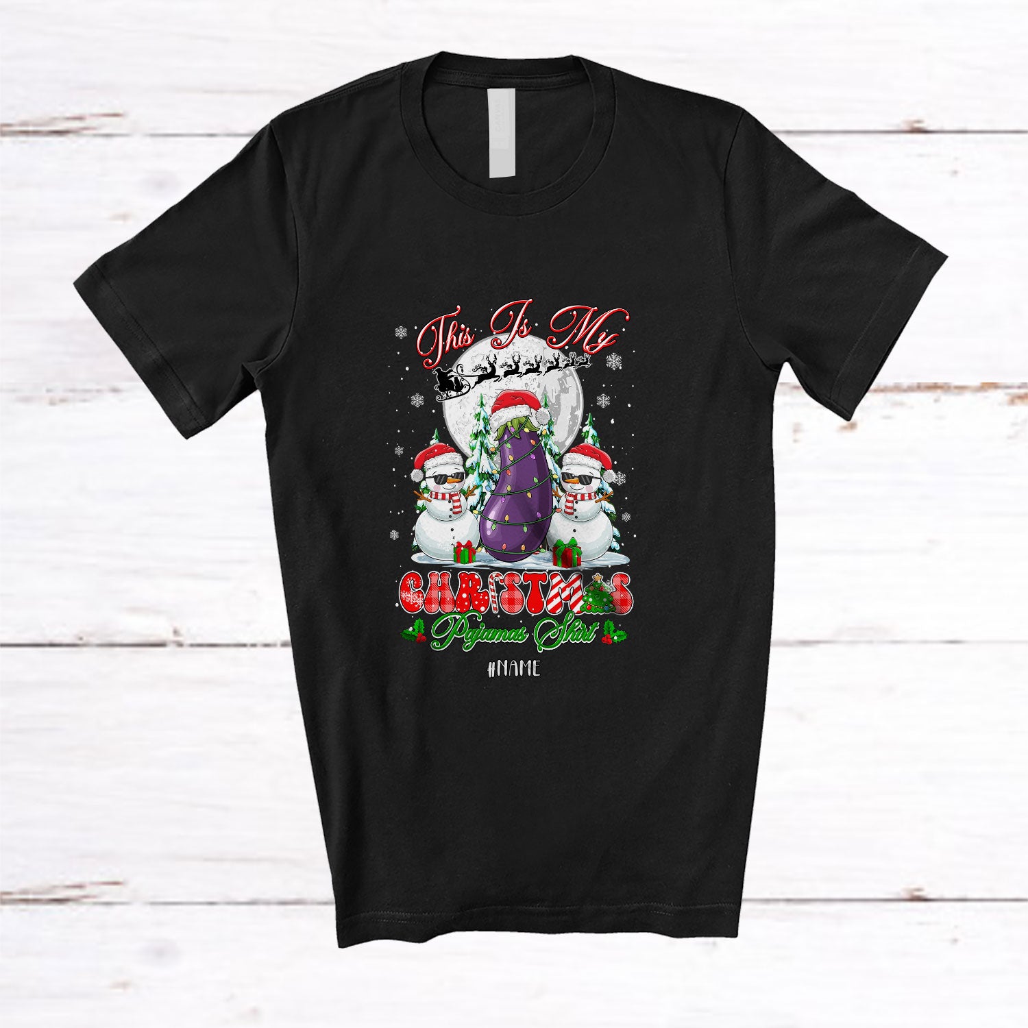 Personalized Custom Name My Christmas Pajamas Shirt; Lovely Eggplant Snowman; Vegetable Vegan T-Shirt