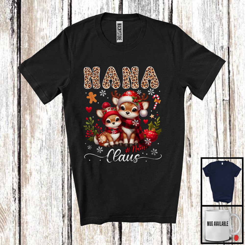 Personalized Custom Name Nana Claus; Adorable Christmas Leopard Plaid Reindeer; Family T-Shirt