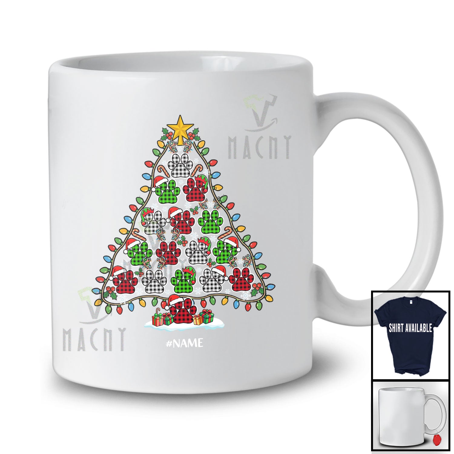 Personalized Custom Name Plaid Dog Paws Christmas Tree; Amazing X-mas Lights Pajama Family T-Shirt. This cotton t-shirt is a durable staple product with a classic fit. One of the most popular items, it has a relaxed style made for everyday and casual wear.