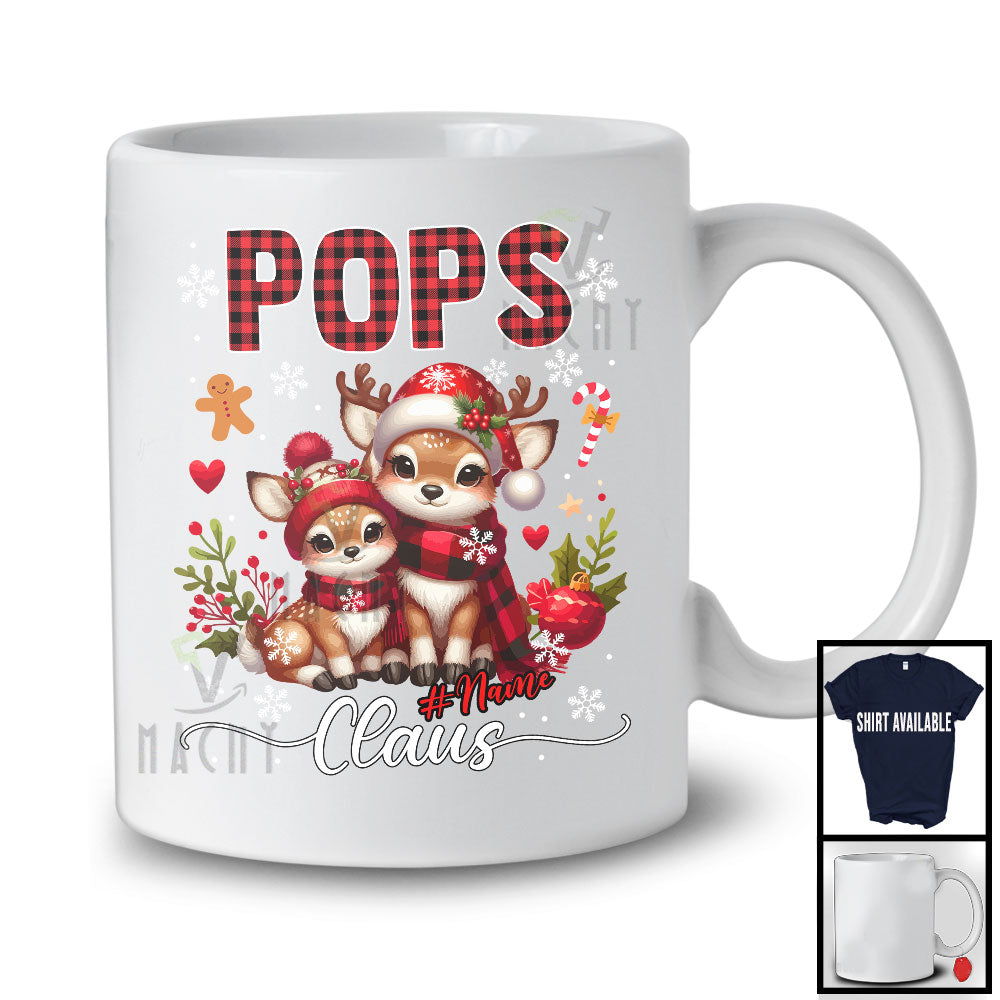 Personalized Custom Name Pops Claus; Adorable Christmas Red Plaid Reindeer; Family T-Shirt