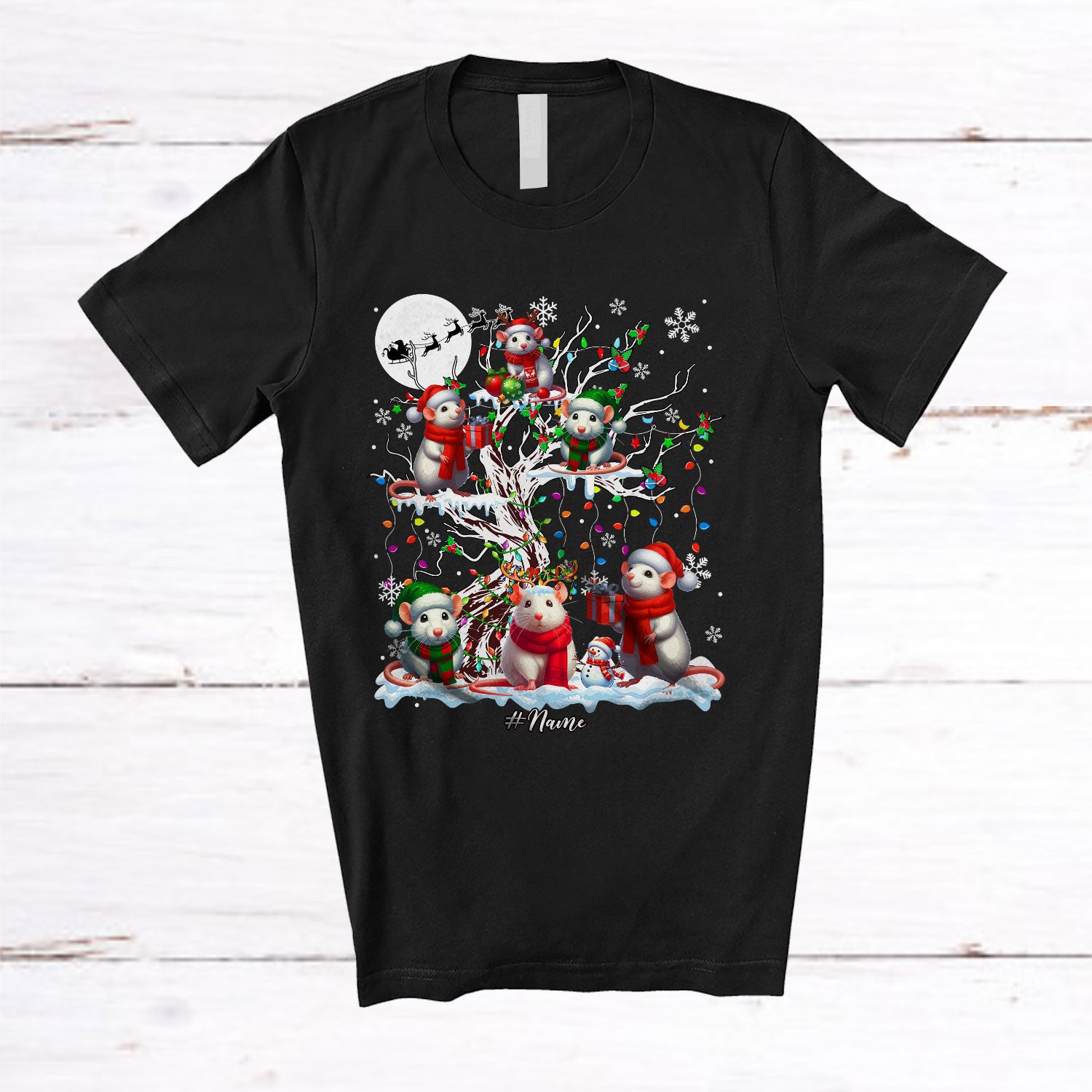 Personalized Custom Name Rat On Christmas Tree; Amusing X-mas Snow Lights; Animal Lover T-Shirt