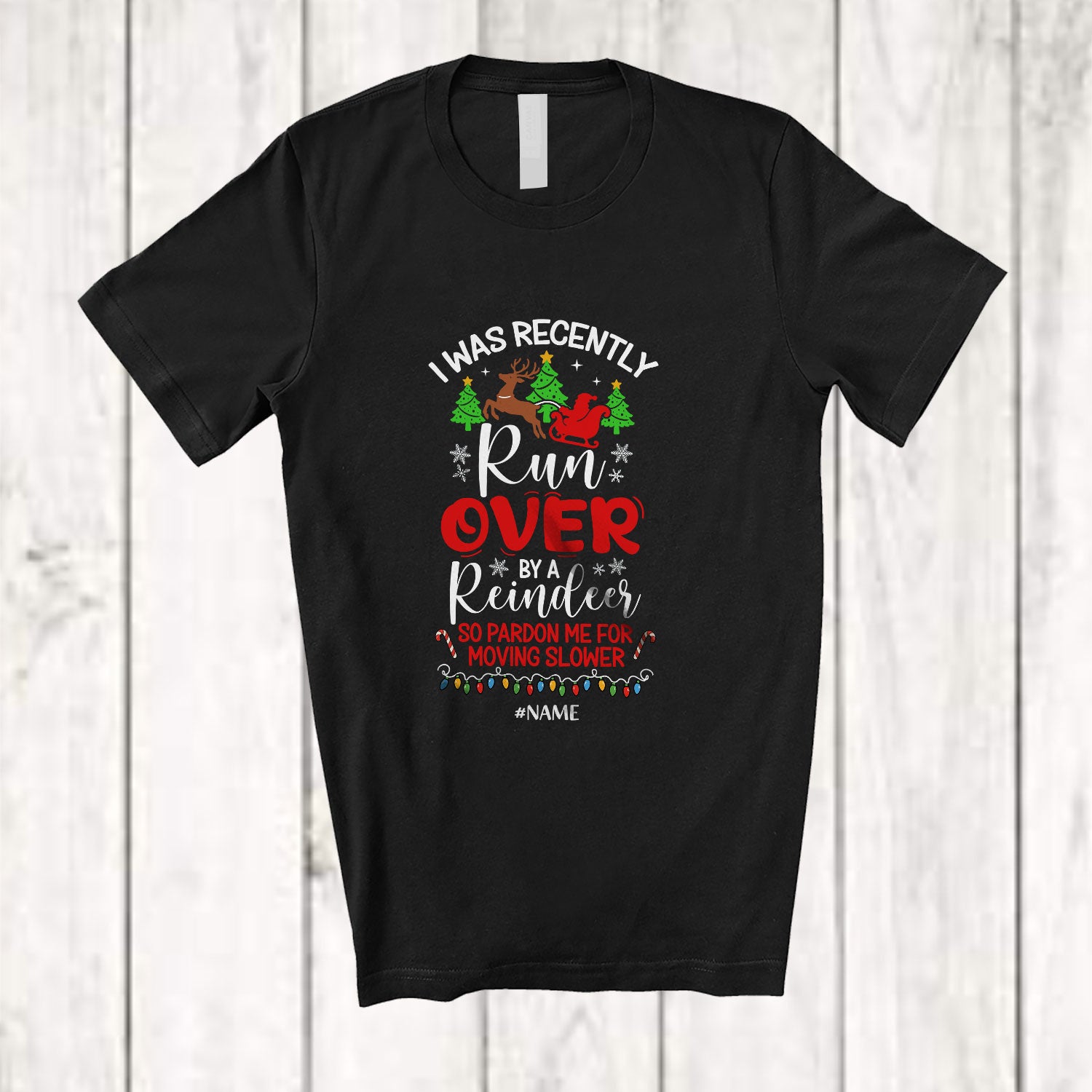 Personalized Custom Name Run Over By A Reindeer; Humorous Christmas Santa Running Runner T-Shirt