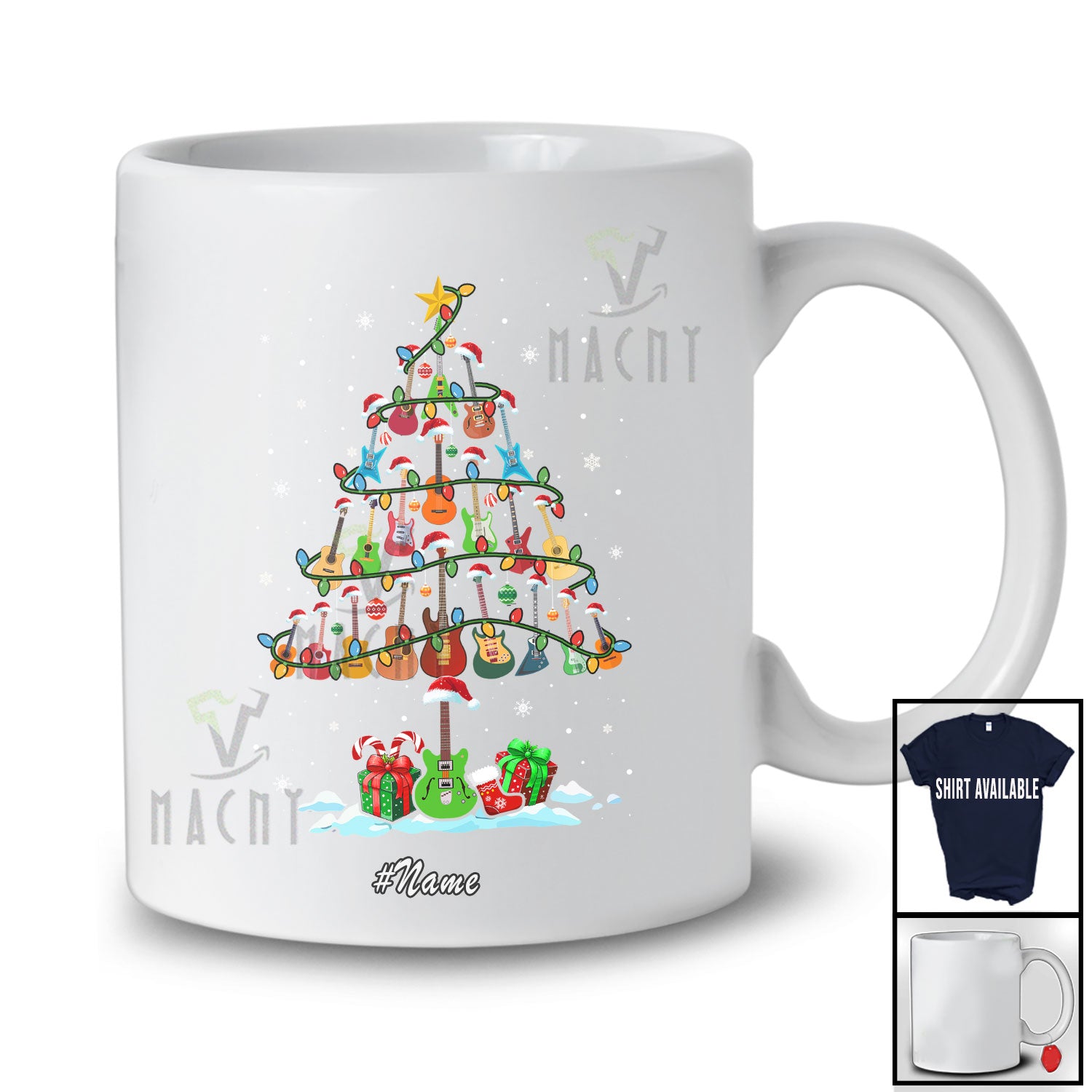Personalized Custom Name Santa Guitar Christmas Tree; Awesome X-mas Guitarist Guitar T-Shirt. This cotton t-shirt is a durable staple product with a classic fit. One of the most popular items, it has a relaxed style made for everyday and casual wear.