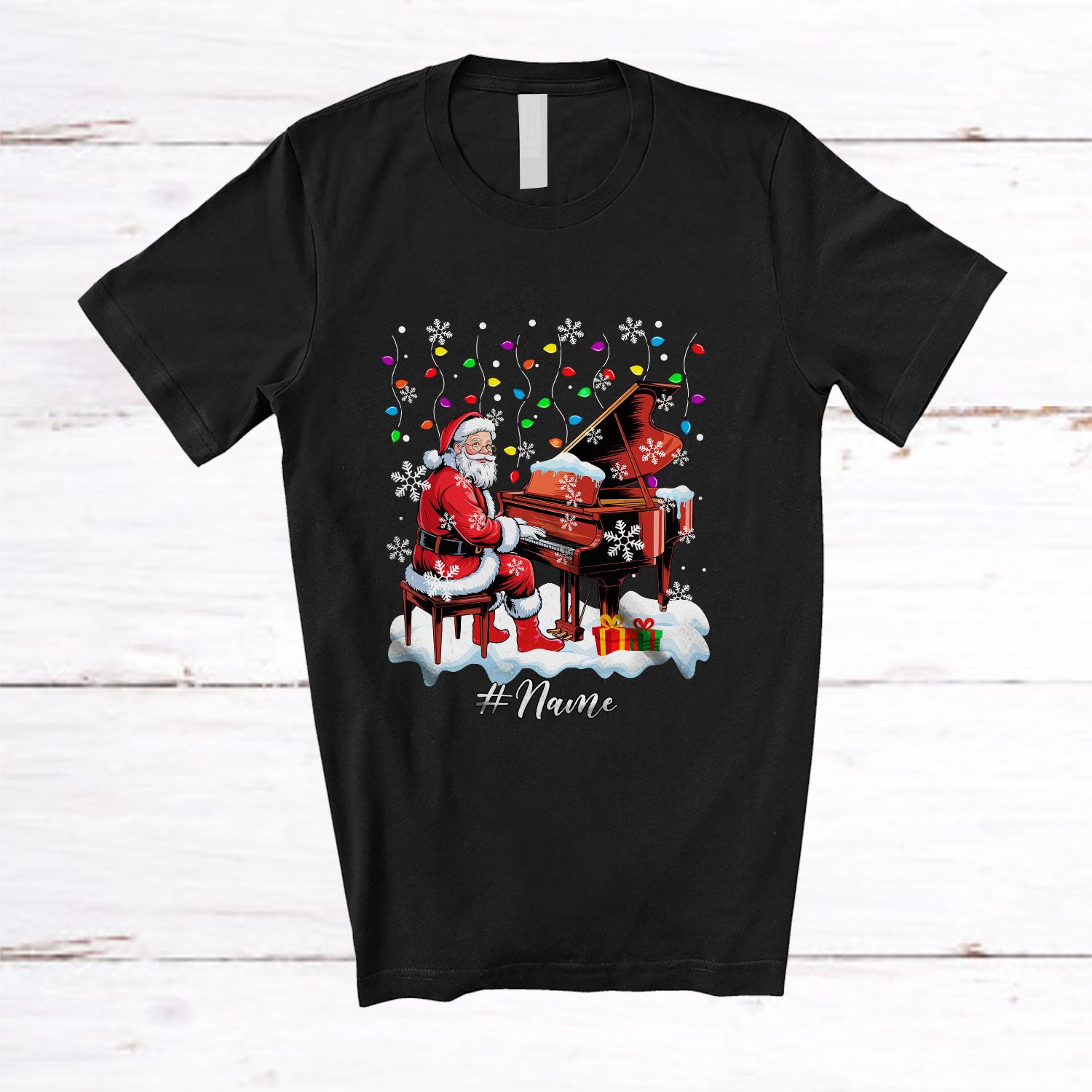 Personalized Custom Name Santa Playing Piano; Cheerful Christmas Light Musical Instrument Player T-Shirt