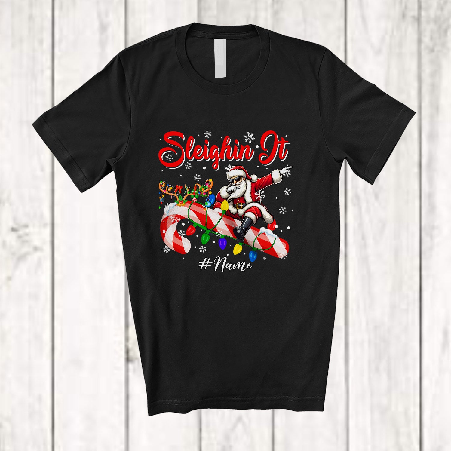 Personalized Custom Name Sleighin It; Joyful Christmas Santa Dabbing Sleigh Candy Cane Reindeer T-Shirt