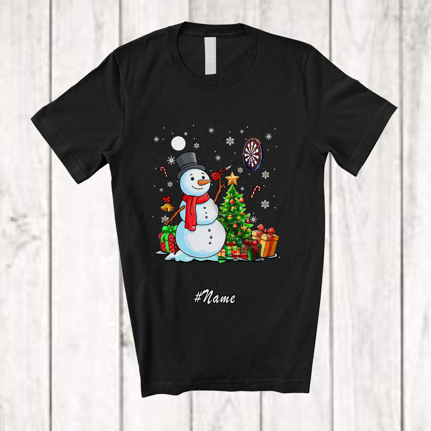 Personalized Custom Name Snowman Playing Darts; Amusing Christmas Tree Darts Player Group T-Shirt