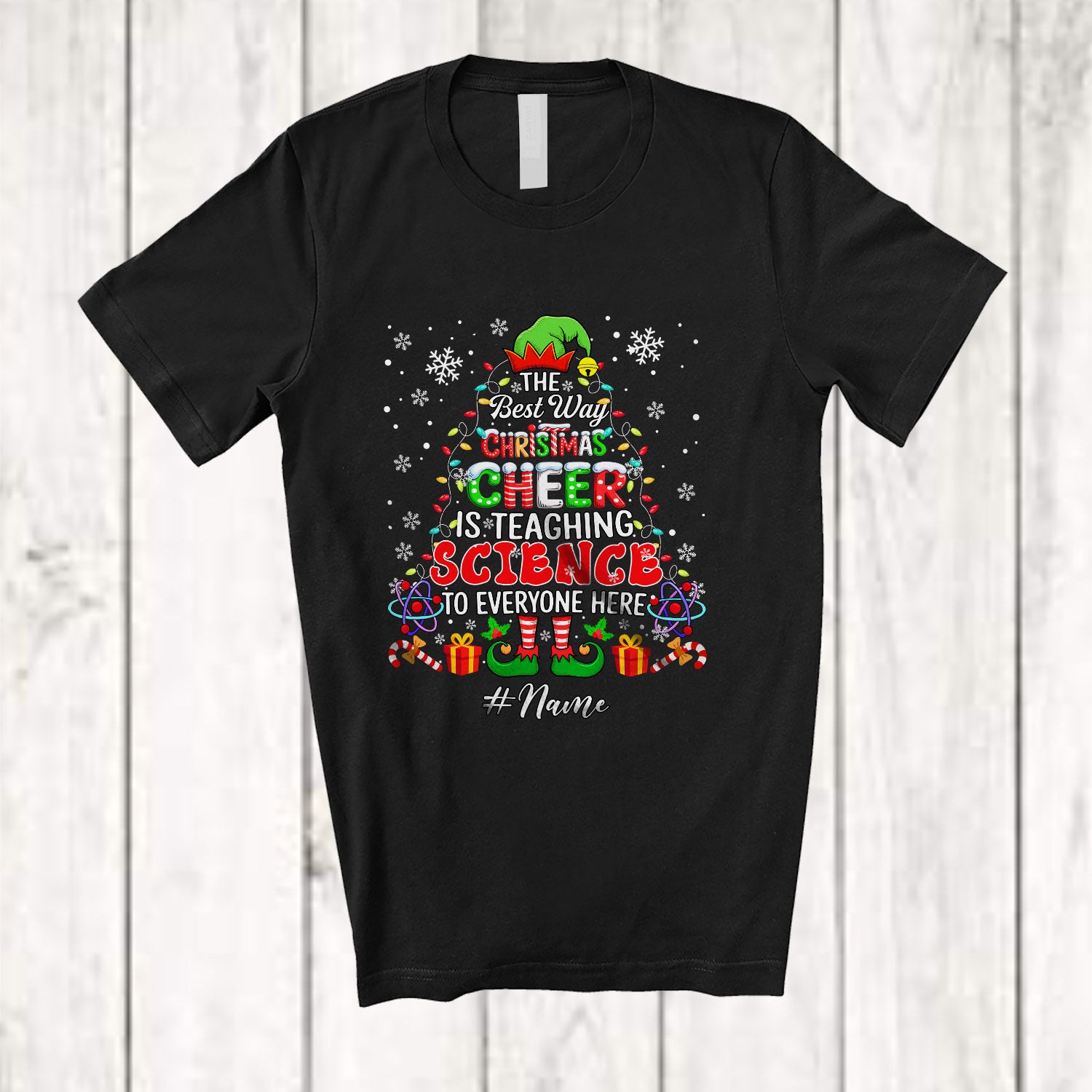 Personalized Custom Name Spread Christmas Cheer Is Teaching Science; Lovely Elf X-mas Teacher T-Shirt
