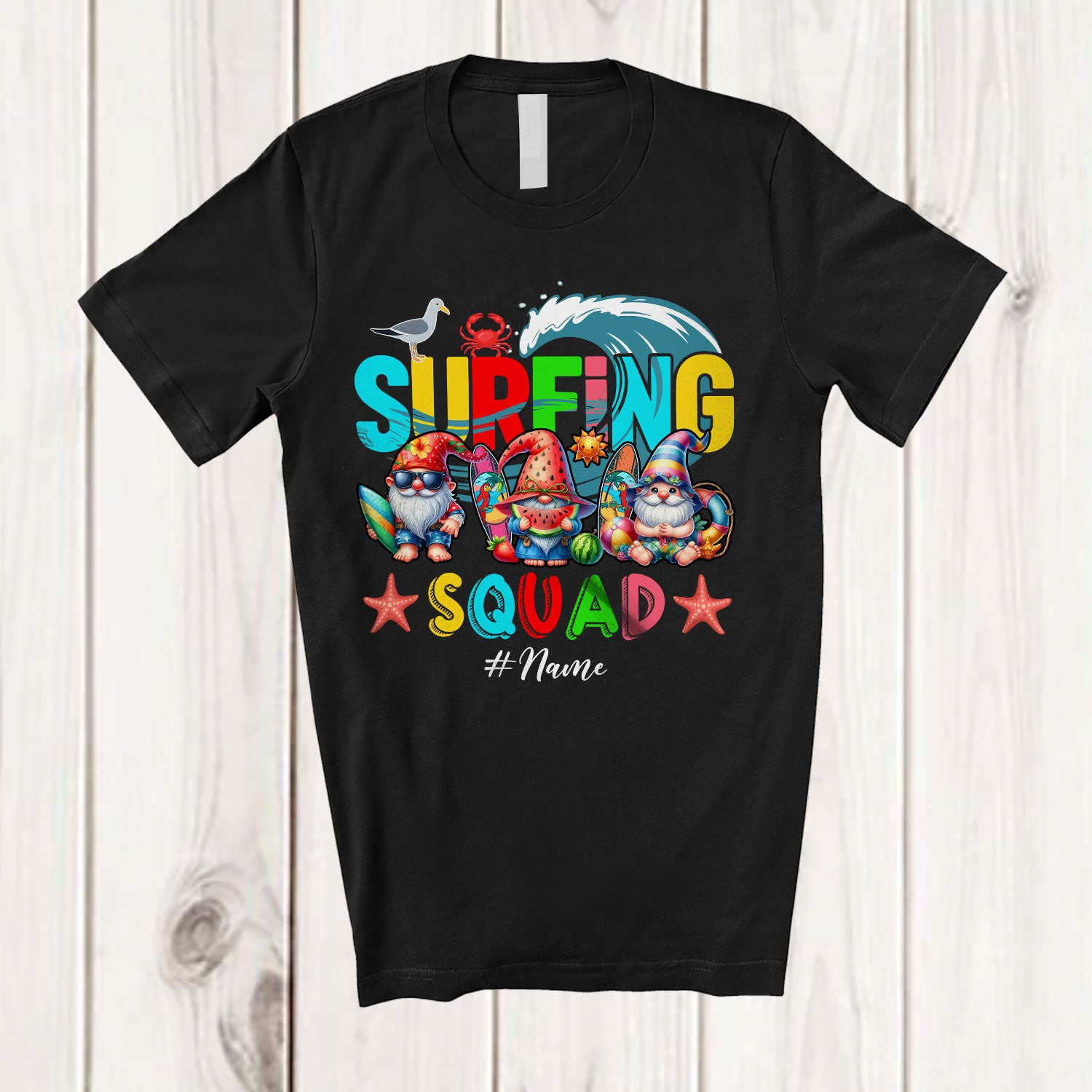 Personalized Custom Name Surfing Squad; Joyful Summer Christmas In July 3 Gnomes Hawaiian T-Shirt