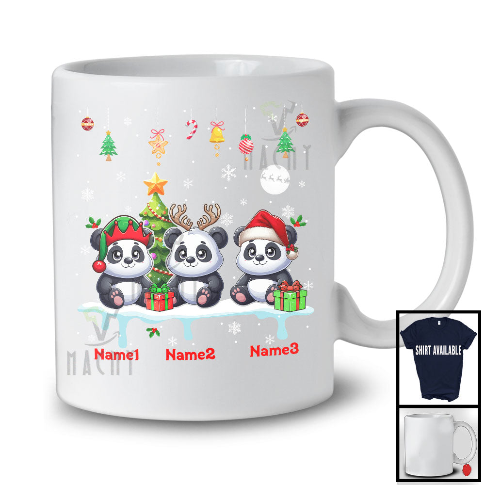 new MacnyStore - Personalized Custom Name Three Elf Santa Panda Snowing; Joyful Christmas Tree Animal T-Shirt – Macnystore