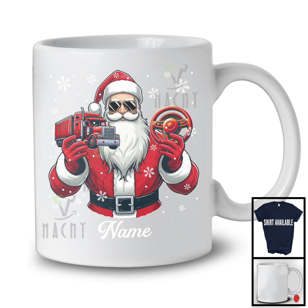 Personalized Custom Name Trucker Santa, Joyful Christmas Santa Snowing, Careers Group T-Shirt