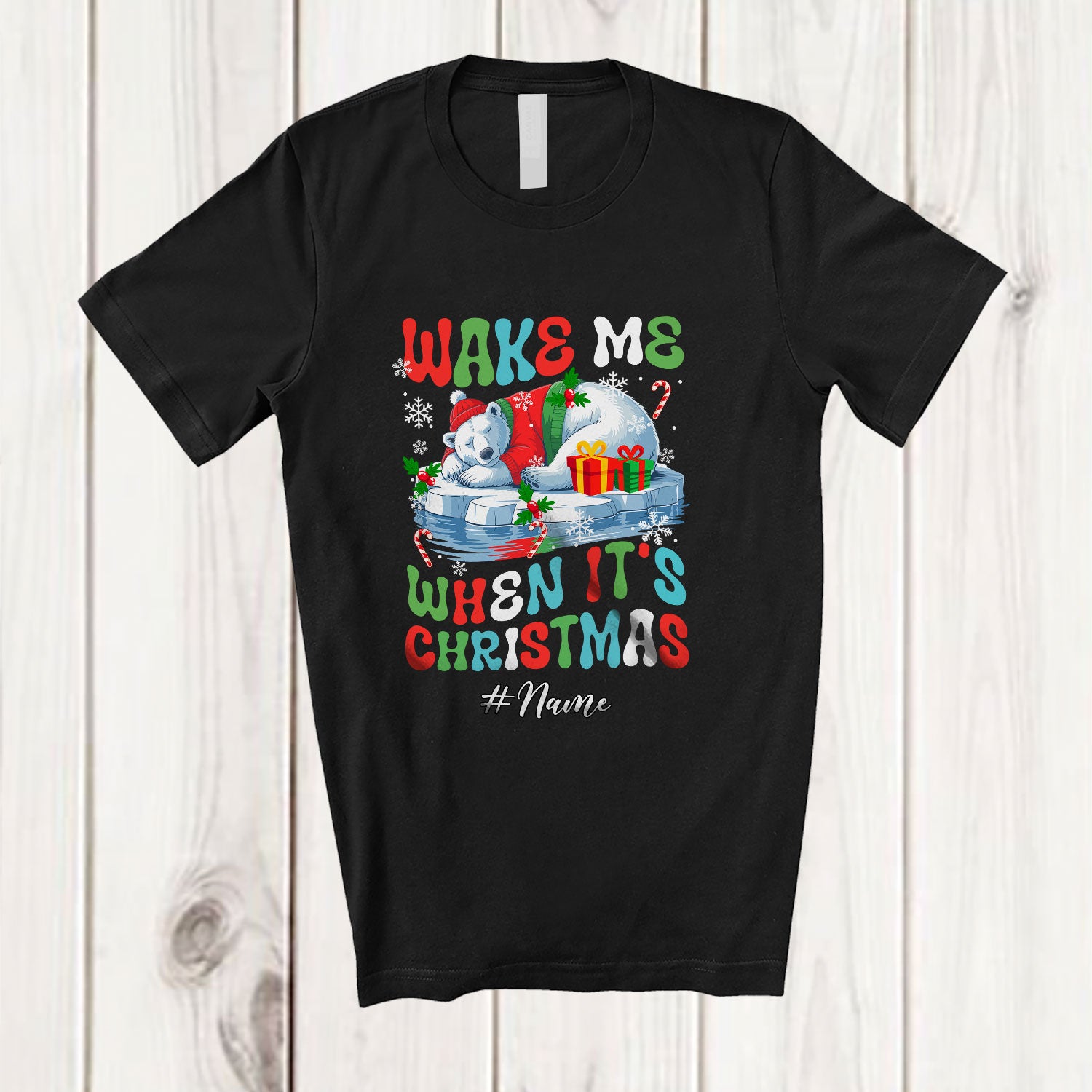 Personalized Custom Name Wake Me When It's Christmas; Humorous X-mas Polar Bear Sleepy Animal T-Shirt