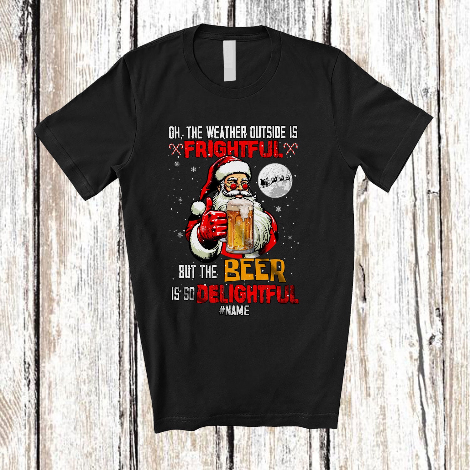 • Every product is unique, just like you. If you're looking for a product that fits the mold of your life, the Personalized Custom Name Weather Frightful Beer is Delightful; Merry Christmas Santa Drinking Drunker T-Shirt is for you.