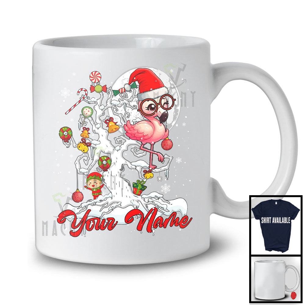new MacnyStore - Personalized Flamingo Bird Santa On Christmas Tree, Adorable ELF Snow, Custom Name Bird Lover T-Shirt – Macnystore