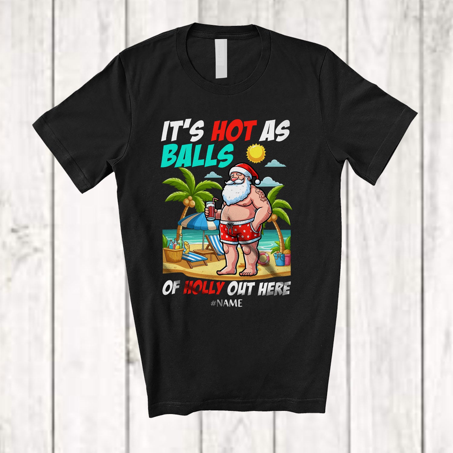 Personalized Hot As Balls; Amazing Christmas In July Custom Name Fat Santa Hawaiian; Beach T-Shirt. This cotton t-shirt is a durable staple product with a classic fit. One of the most popular items, it has a relaxed style made for everyday and casual wear.