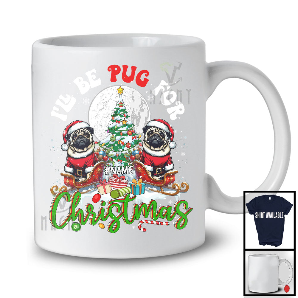 Personalized I'll Be Pug For Christmas, Merry X-mas Tree Lights Custom Name Pug, Snow T-Shirt. This cotton t-shirt is a durable staple product with a classic fit. One of the most popular items, it has a relaxed style made for everyday and casual wear.