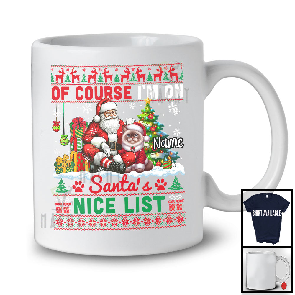 new MacnyStore - Personalized I'm on Santa's Nice List, Merry Christmas Sweater Custom Name Burmese Cat Santa T-Shirt – Macnystore