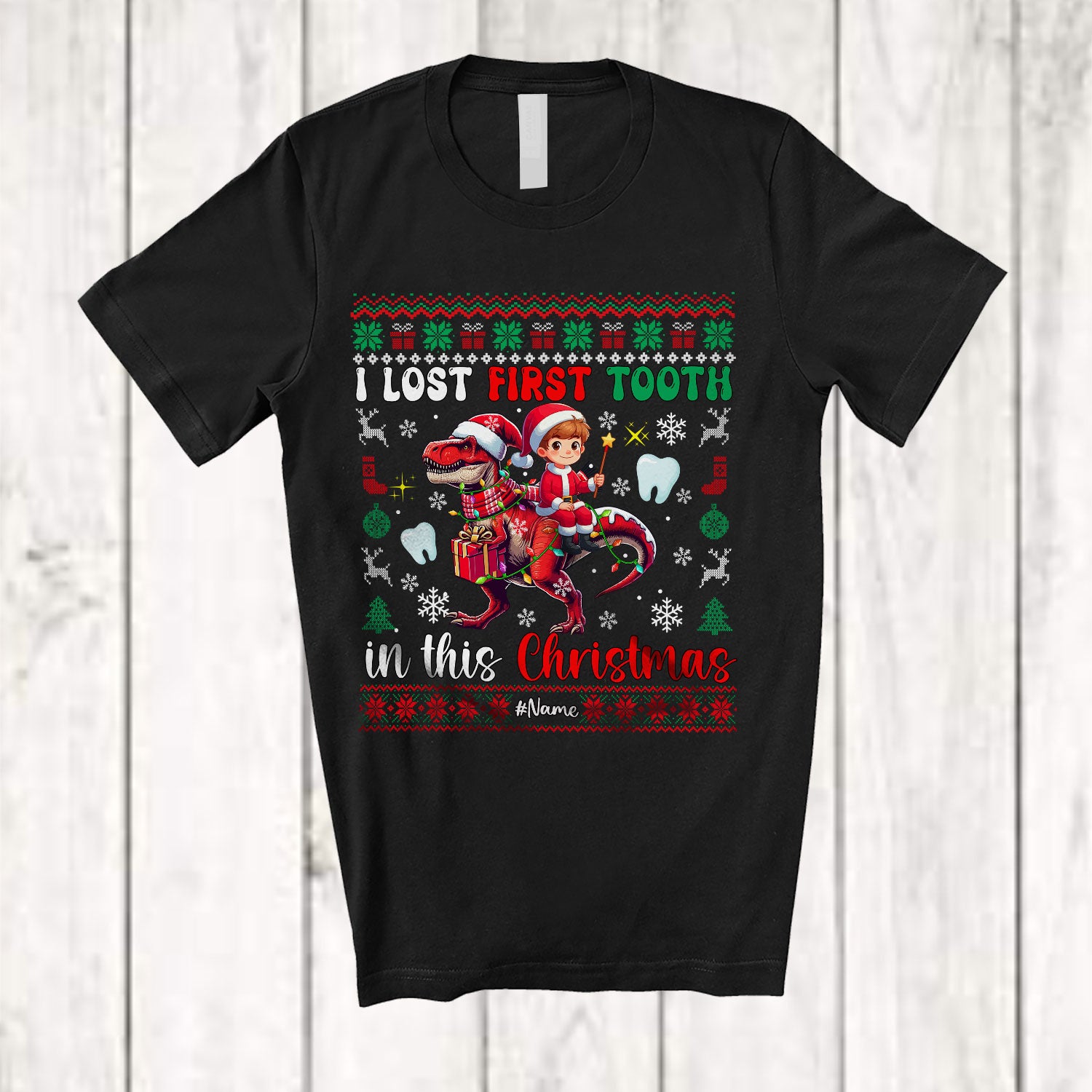 Personalized Lost First Tooth In This Christmas; Joyful Custom Name Boy Riding Unicorn; Sweater Dental T-Shirt