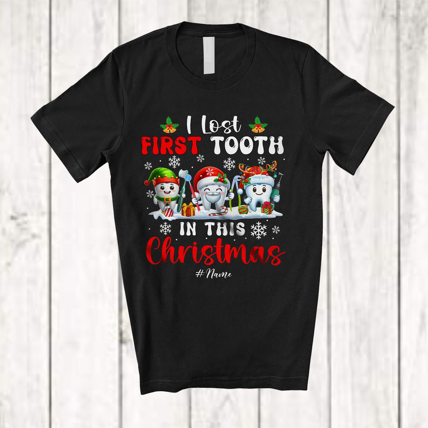 Personalized Lost First Tooth In This Christmas; Joyful Custom Name Three Teeth; Dental Squad T-Shirt