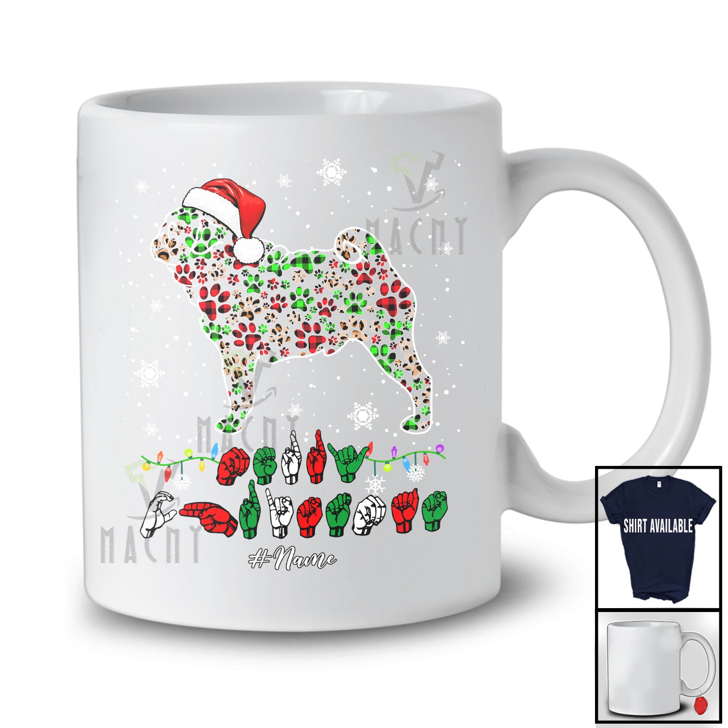 Every product is unique, just like you. If you're looking for a product that fits the mold of your life, the Personalized Merry Christmas ASL; Lovely Custom Name Santa Pug Paws Shape; Sign Language T-Shirt is for you.