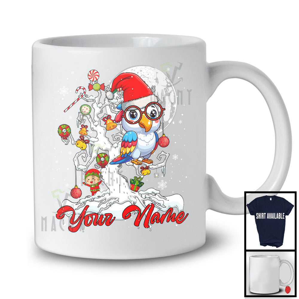 Personalized Parrot Bird Santa On Christmas Tree, Adorable ELF Snow, Custom Name Bird Lover T-Shirt. This cotton t-shirt is a durable staple product with a classic fit. One of the most popular items, it has a relaxed style made for everyday and casual wear.