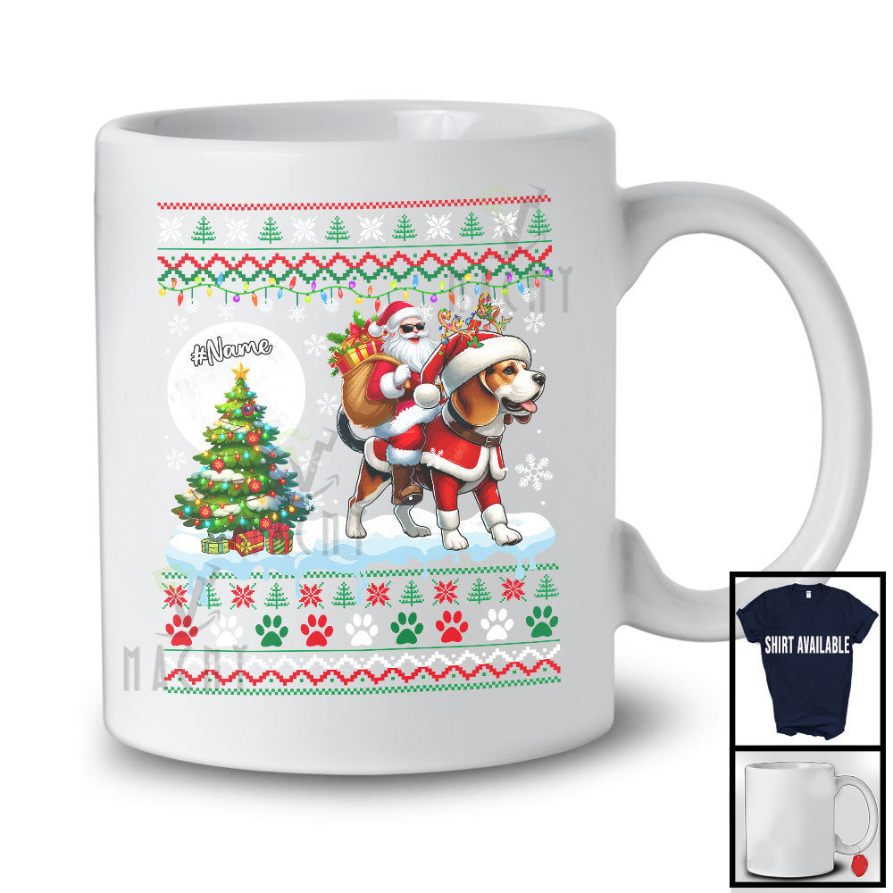 Personalized Santa Riding Custom Name Beagle Puppy; Lovely Christmas Sweater Moon Tree T-Shirt