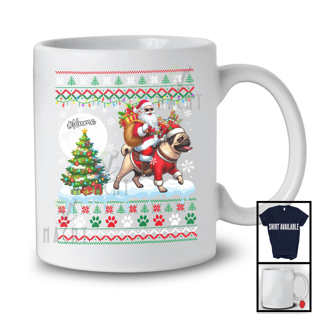 The Personalized Santa Riding Custom Name Pug Puppy; Lovely Christmas Sweater Moon Tree T-Shirt destined to impress, and priced at only $12.95, for a limited time.