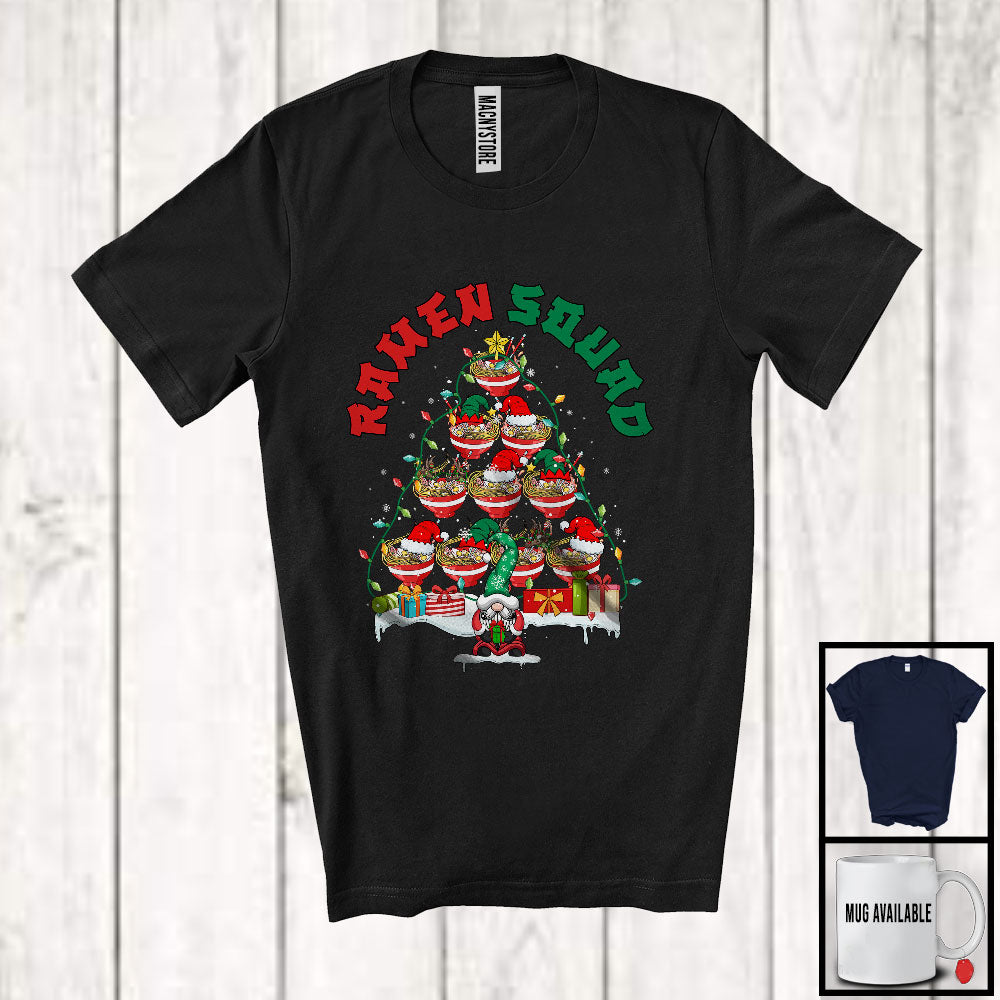 new MacnyStore - Ramen Squad; Amazing Christmas Tree Elf Reindeer Santa Ramen Japan Food; Snowing T-Shirt – Macnystore