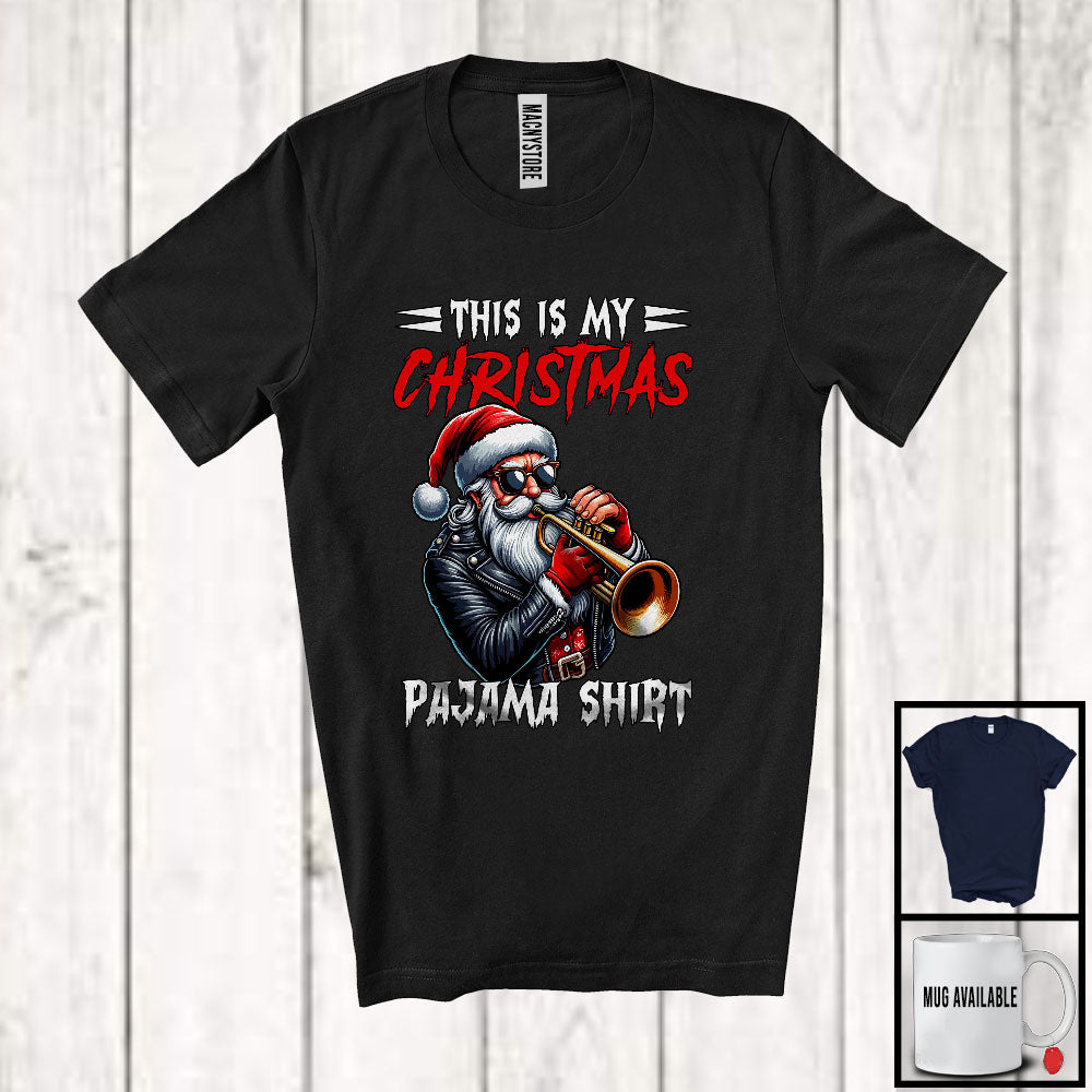 This Is My Christmas Pajama Shirt; Joyful Santa Playing Trumpet Player; Musical Instrument T-Shirt