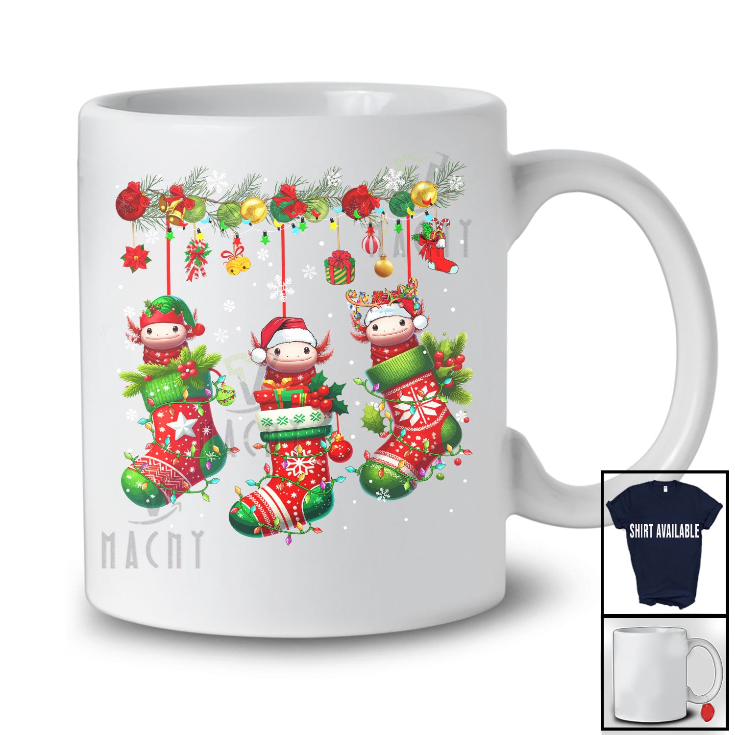 This Three Santa Reindeer Elf Axolotls In X-mas Socks; Amusing Christmas Axolotl Animal Lover T-Shirt is great idea gift for your family, friends in this birthday, christmas, mother's day, father's day, patrick's day or any holiday.