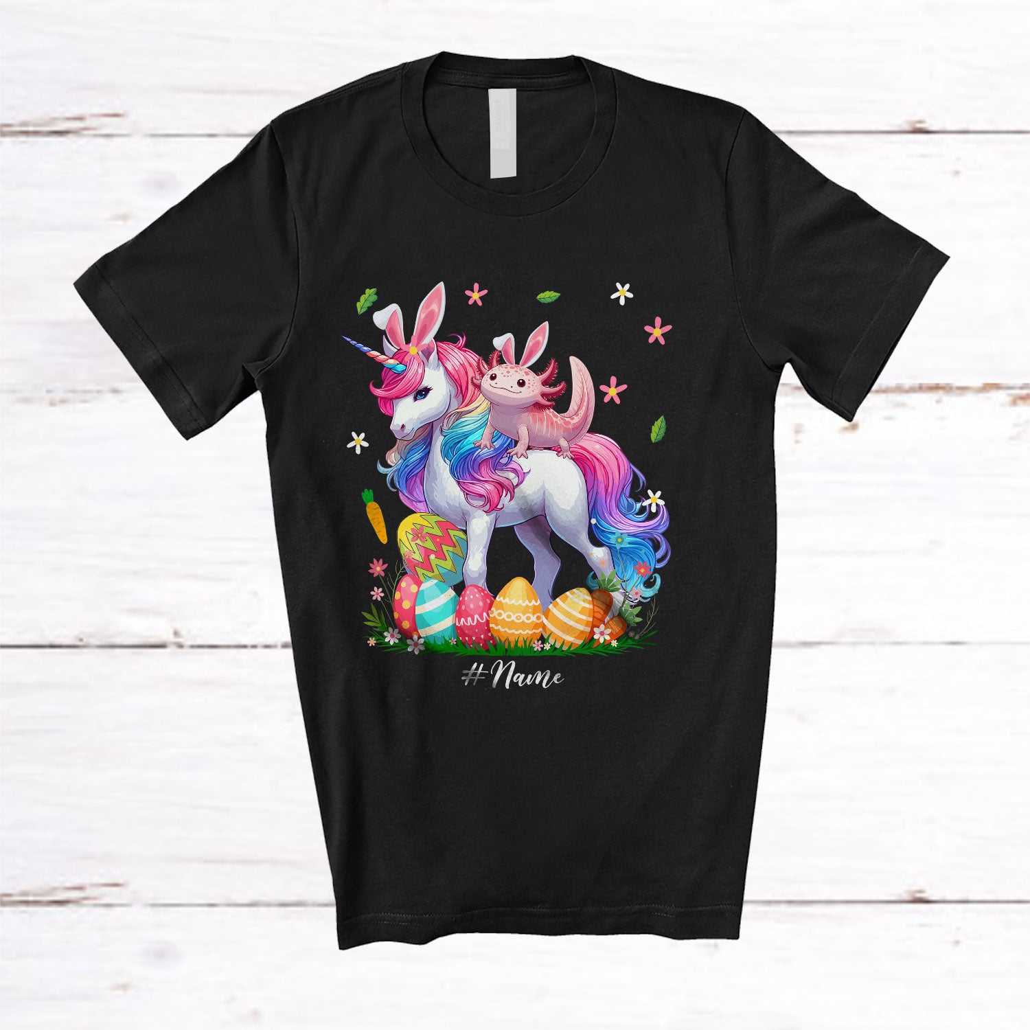 Every product is unique, just like you. If you're looking for a product that fits the mold of your life, the Personalized Custom Name Axolotl Ridding Unicorn; Amazing Easter Eggs Hunting; Family T-Shirt is for you.