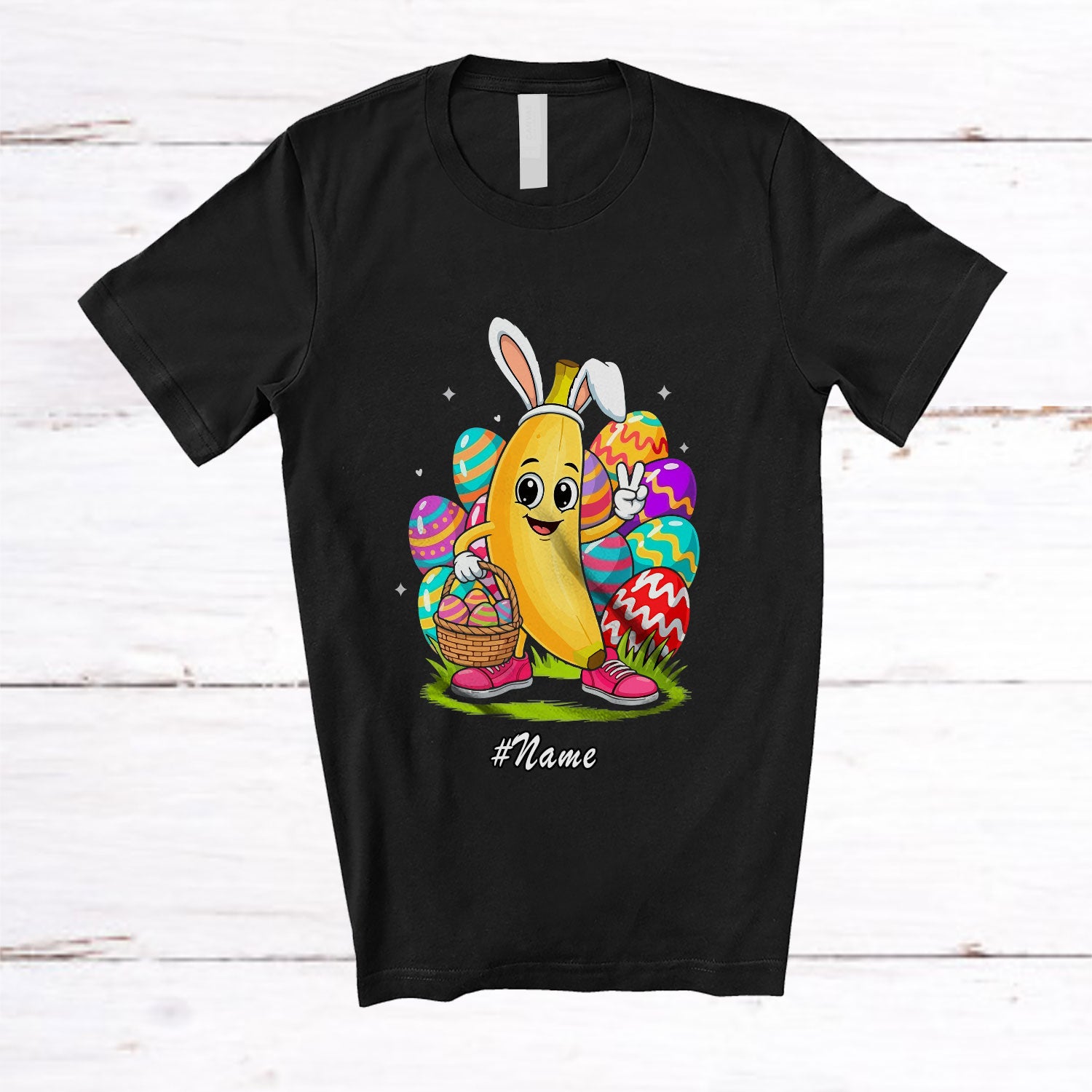 Personalized Custom Name Banana Bunny With Easter Eggs Basket; Lovely Easter Day Vegan Lover T-Shirt