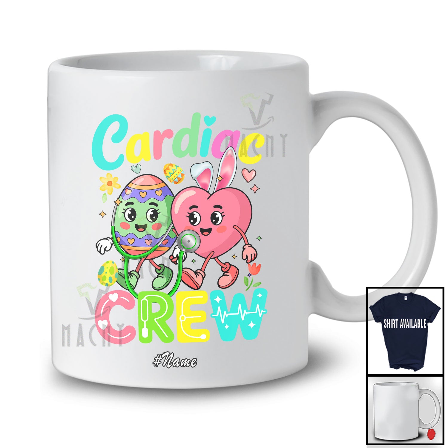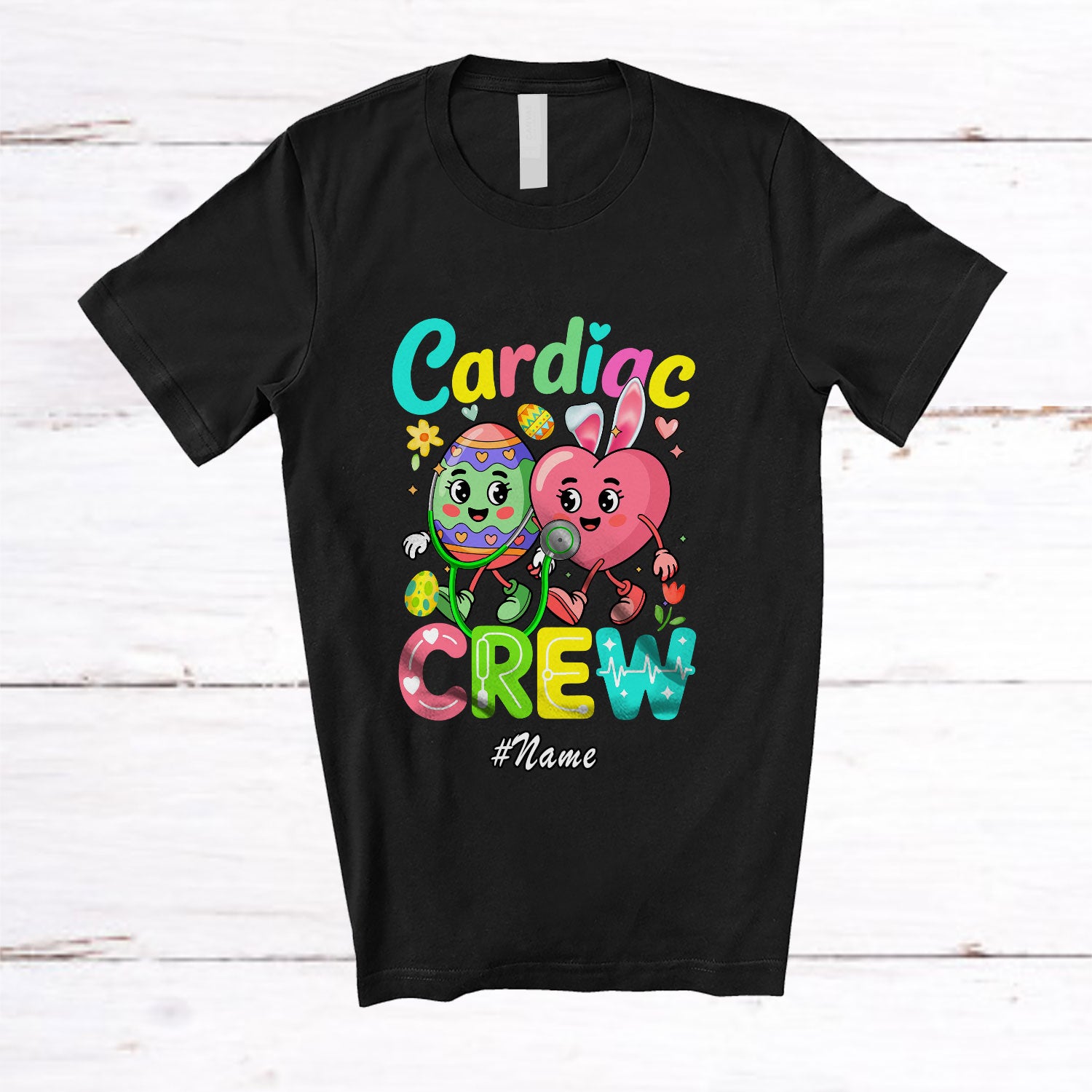 Personalized Custom Name Cardiac Crew; Lovely Easter Day Eggs Heart Bunny; Cardiology Nurse Group T-Shirt