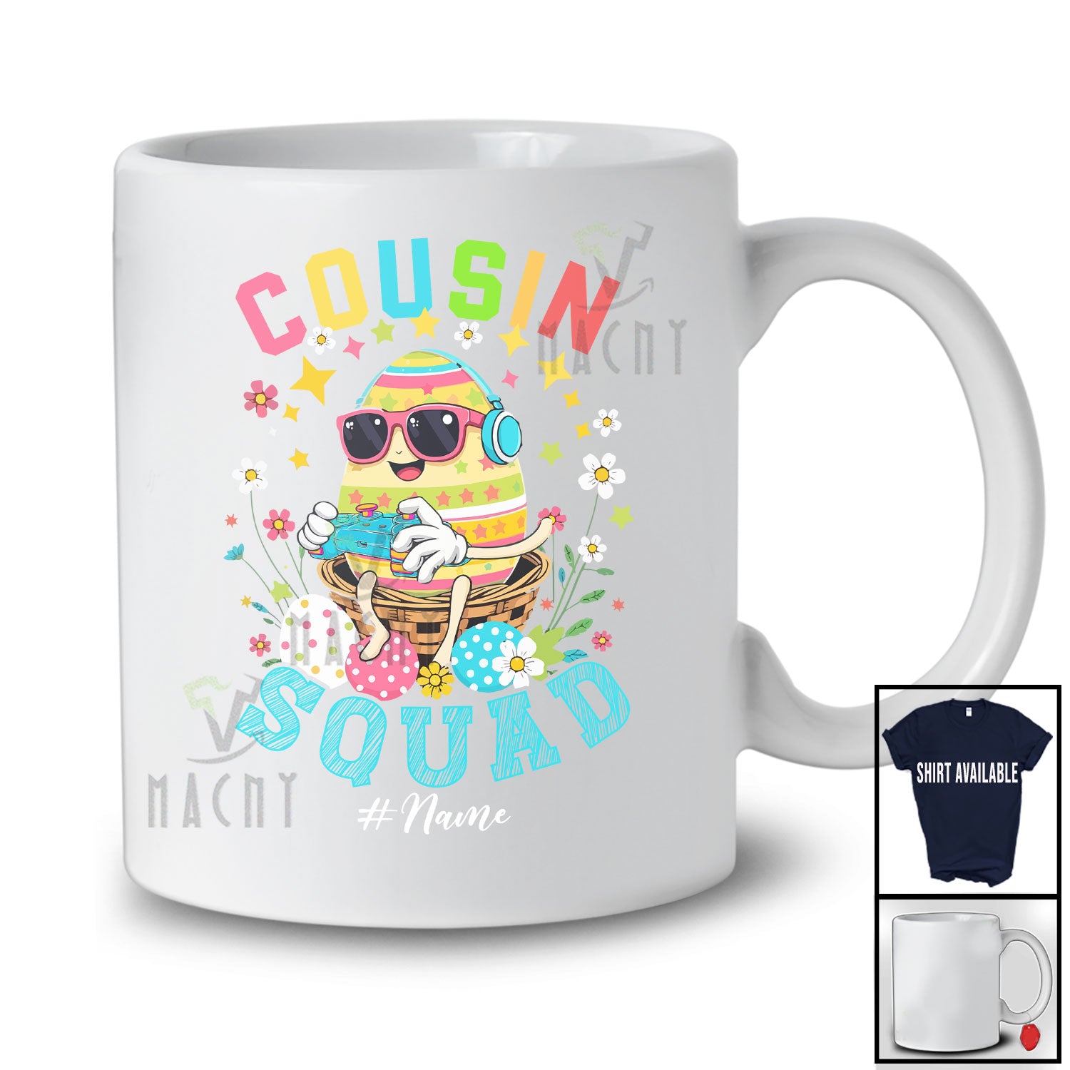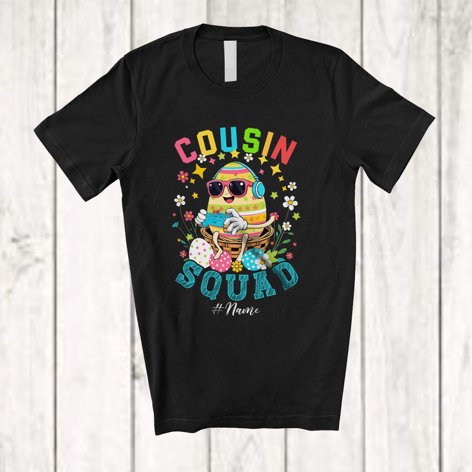 Personalized Custom Name Cousin Squad; Lovely Easter Egg Playing Game; Gaming Gamer T-Shirt. This cotton t-shirt is a durable staple product with a classic fit. One of the most popular items, it has a relaxed style made for everyday and casual wear.