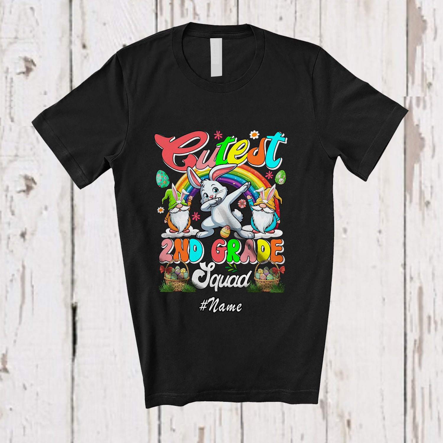 Personalized Custom Name Cutest 2nd Grade; Joyful Easter Rainbow Dabbing Bunny; Students Teacher T-Shirt