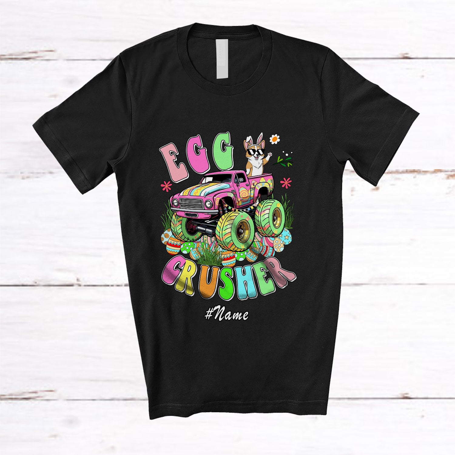 The Personalized Custom Name Egg Crusher; Awesome Easter Corgi On Monster Truck; Eggs Hunting T-Shirt destined to impress, and priced at only $12.95, for a limited time.