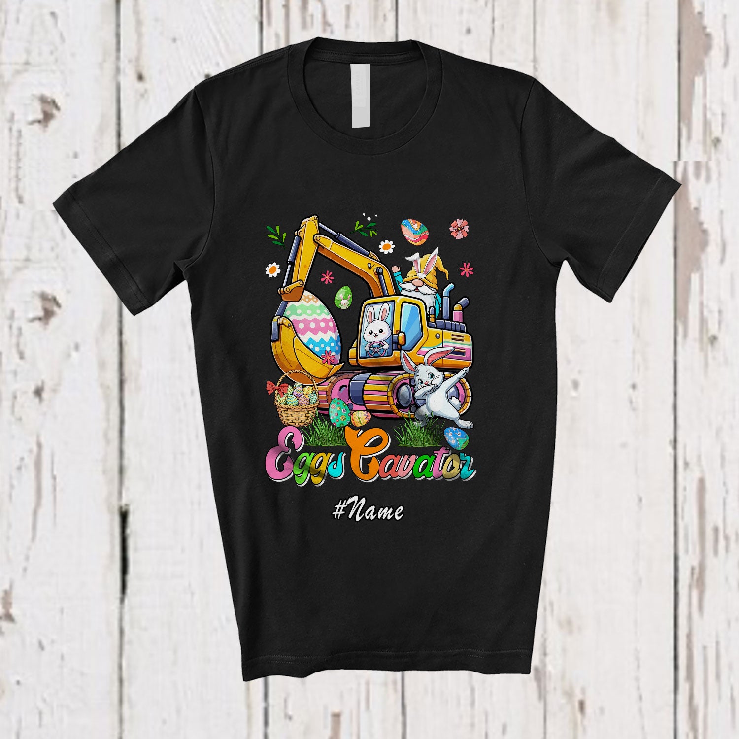 new MacnyStore - Personalized Custom Name Eggs Cavator; Humorous Easter Dabbing Bunny Gnome Excavator Driver T-Shirt – Macnystore